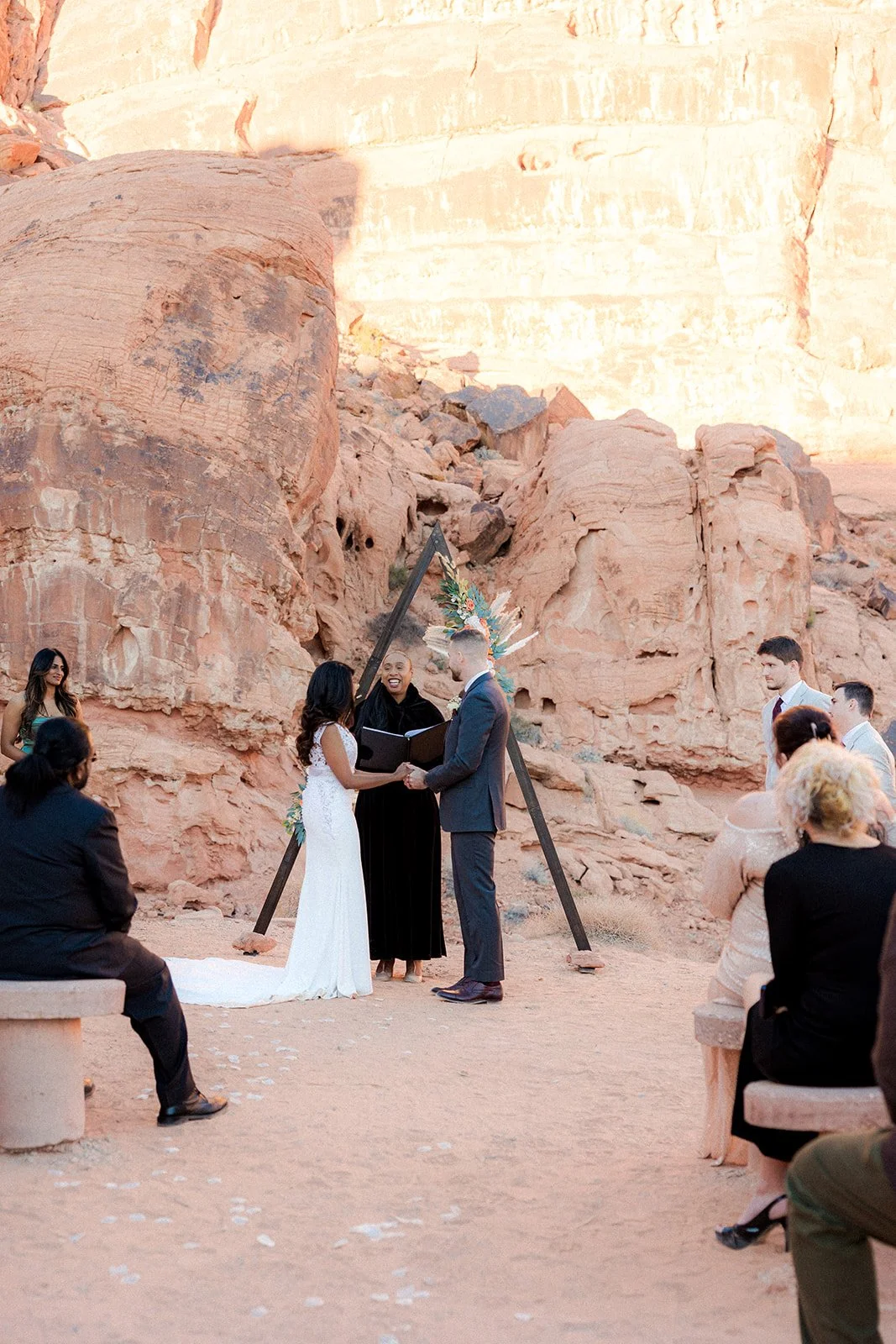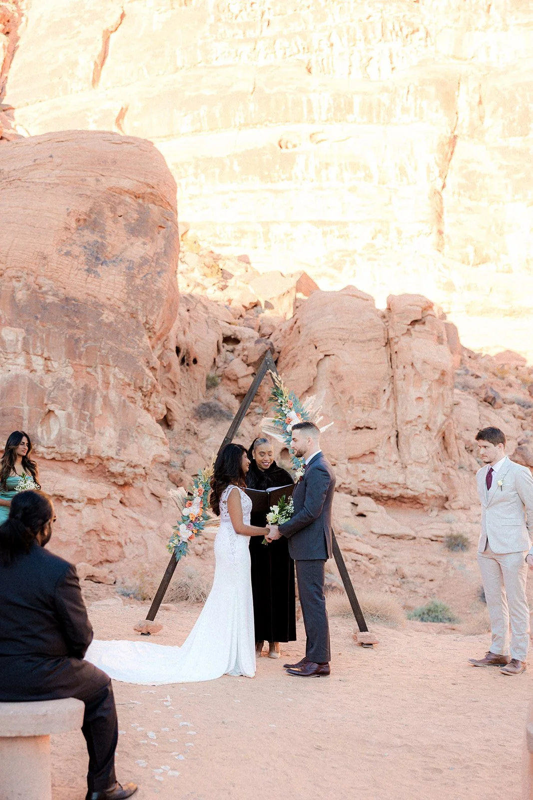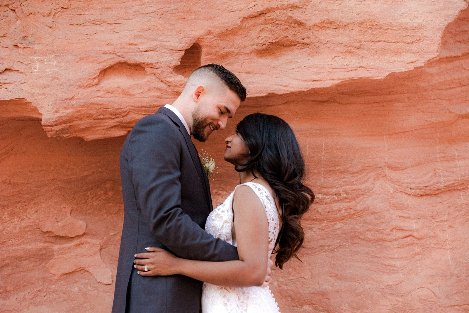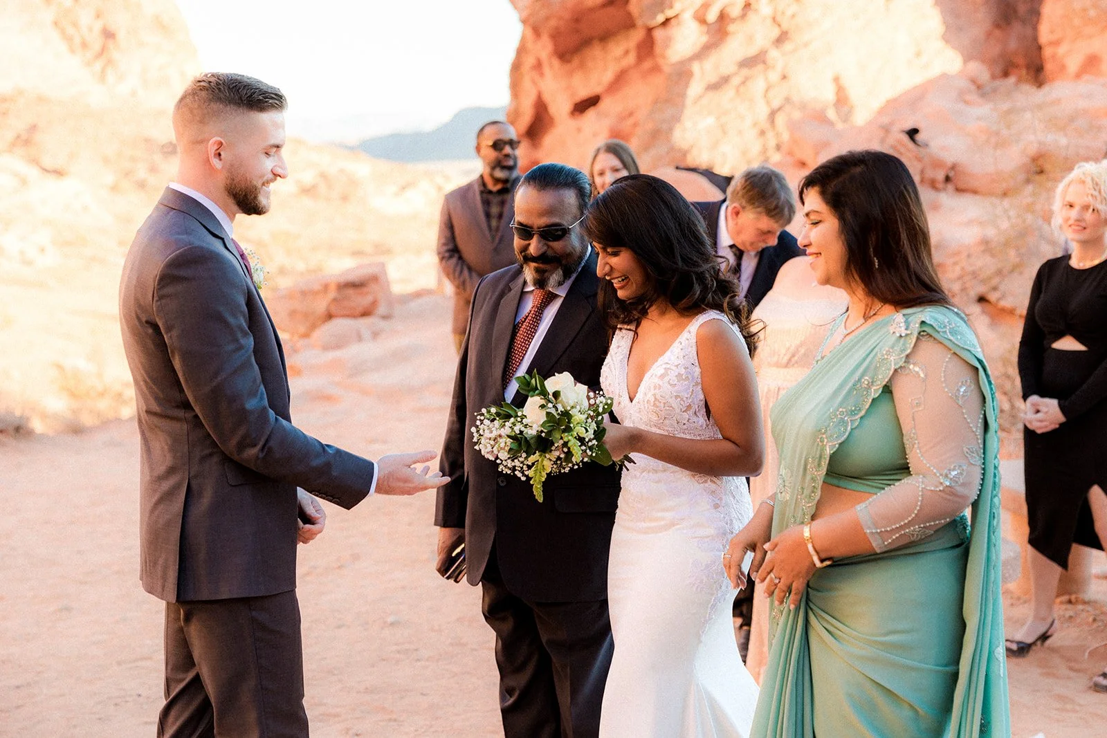 Some people spend years planning their wedding, but Liya and David? They pulled off the most gorgeous Valley of Fire elopement in just two weeks! And honestly, you’d never guess it because every detail was absolute perfection. From the start, these two knew they wanted something adventurous, intimate, and meaningful, so they ditched the big traditional wedding and headed to the stunning Valley of Fire, surrounded by their closest friends and family. And when we say family, we mean people flew in from all over the U.S. and even India just to be there!