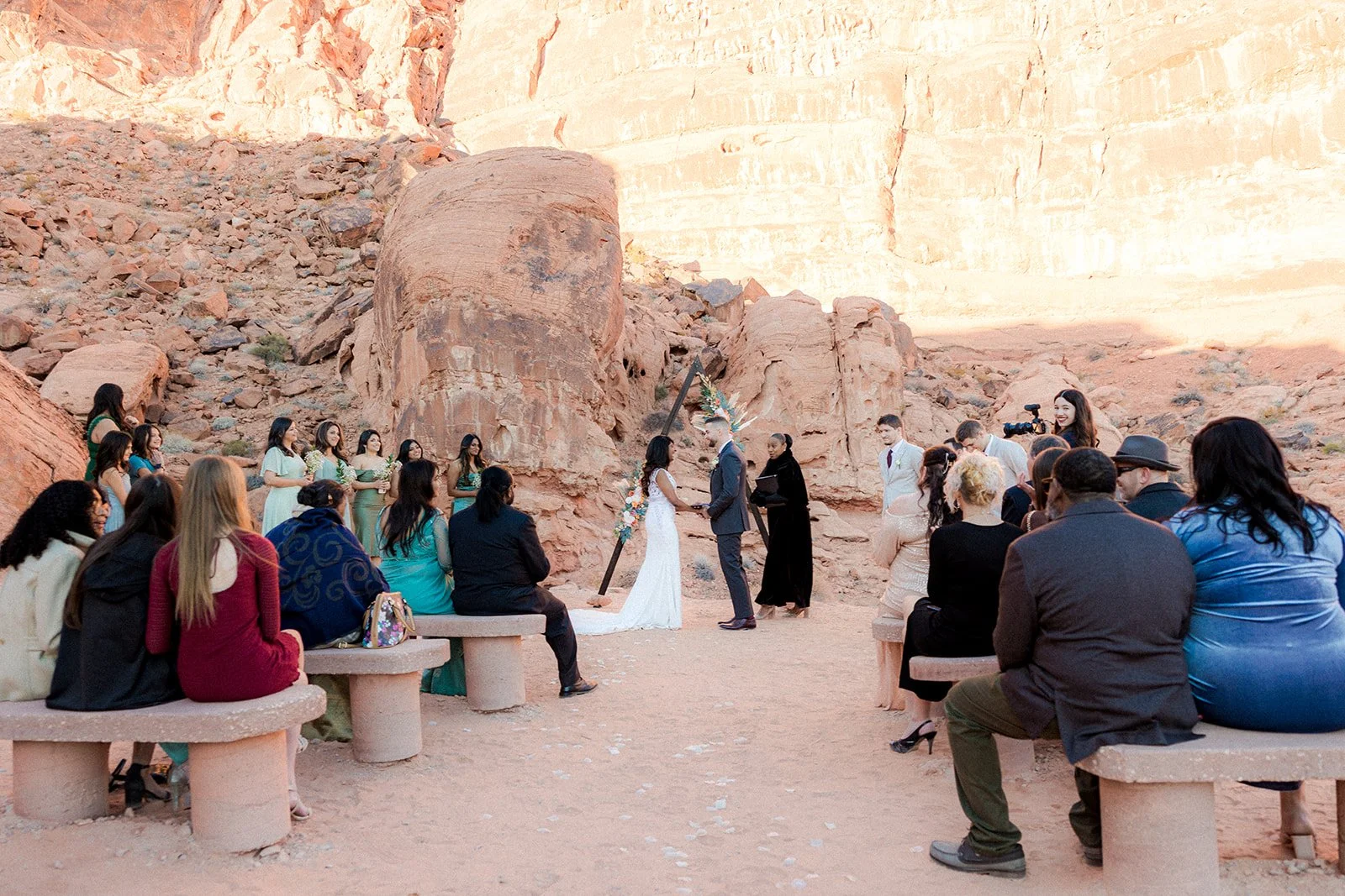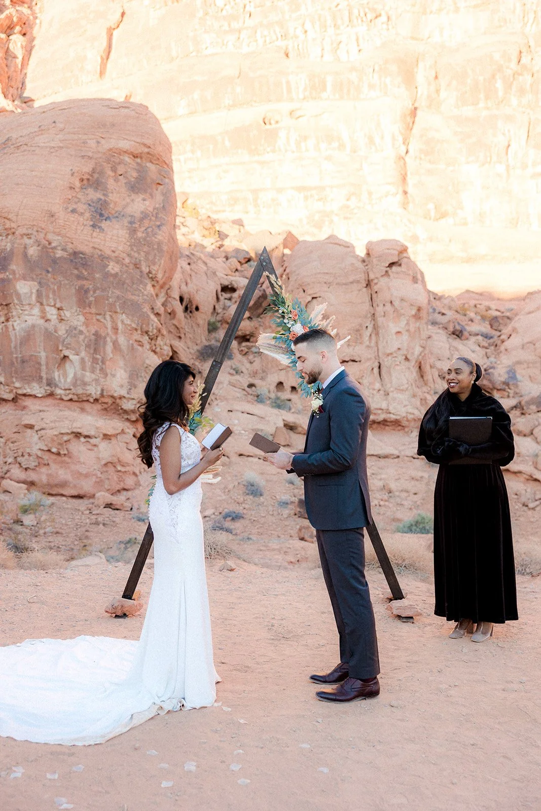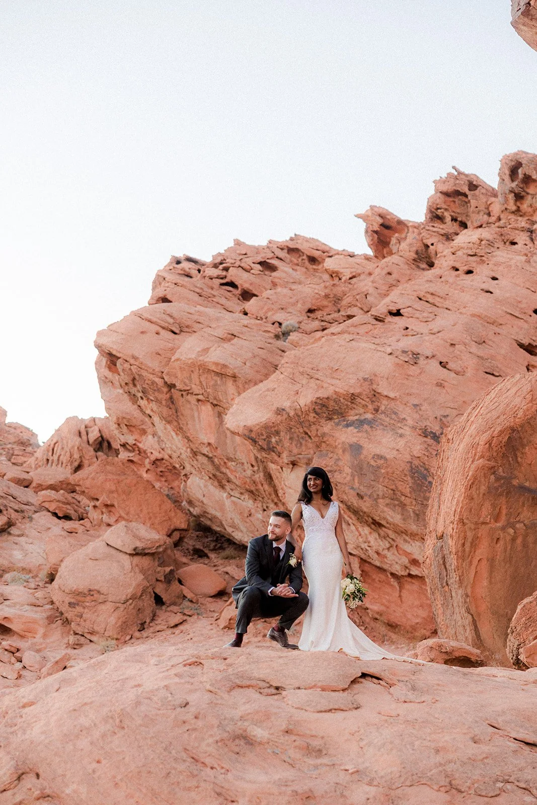 Some people spend years planning their wedding, but Liya and David? They pulled off the most gorgeous Valley of Fire elopement in just two weeks! And honestly, you’d never guess it because every detail was absolute perfection. From the start, these two knew they wanted something adventurous, intimate, and meaningful, so they ditched the big traditional wedding and headed to the stunning Valley of Fire, surrounded by their closest friends and family. And when we say family, we mean people flew in from all over the U.S. and even India just to be there!