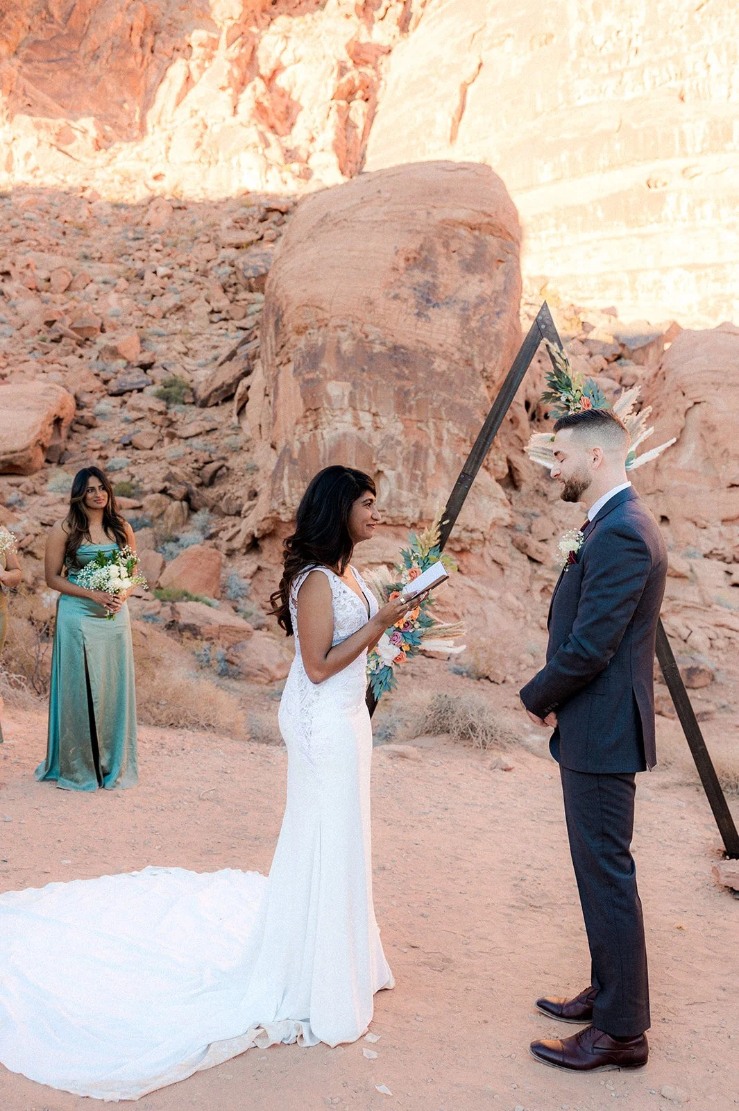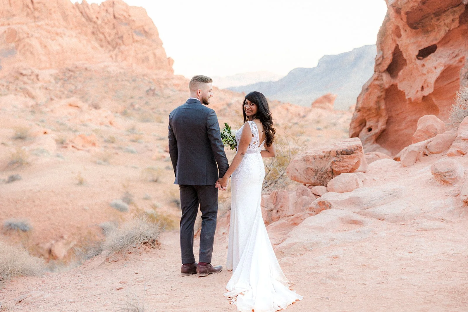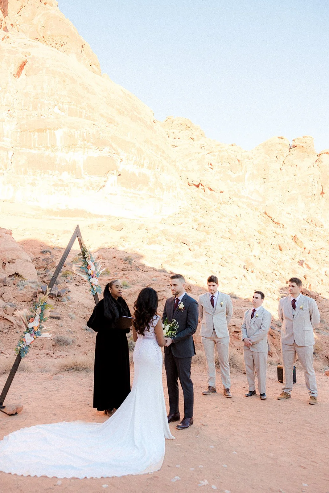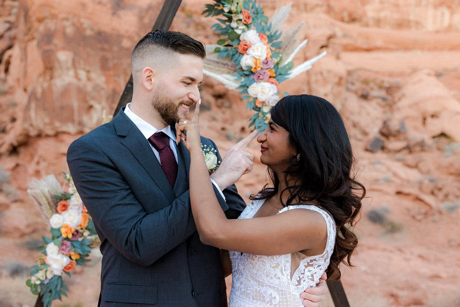 Some people spend years planning their wedding, but Liya and David? They pulled off the most gorgeous Valley of Fire elopement in just two weeks! And honestly, you’d never guess it because every detail was absolute perfection. From the start, these two knew they wanted something adventurous, intimate, and meaningful, so they ditched the big traditional wedding and headed to the stunning Valley of Fire, surrounded by their closest friends and family. And when we say family, we mean people flew in from all over the U.S. and even India just to be there!