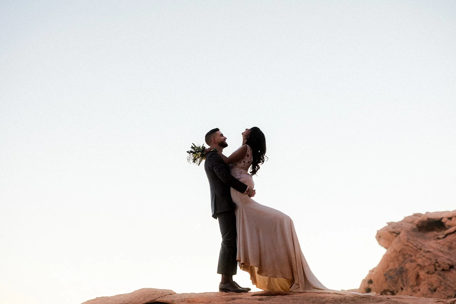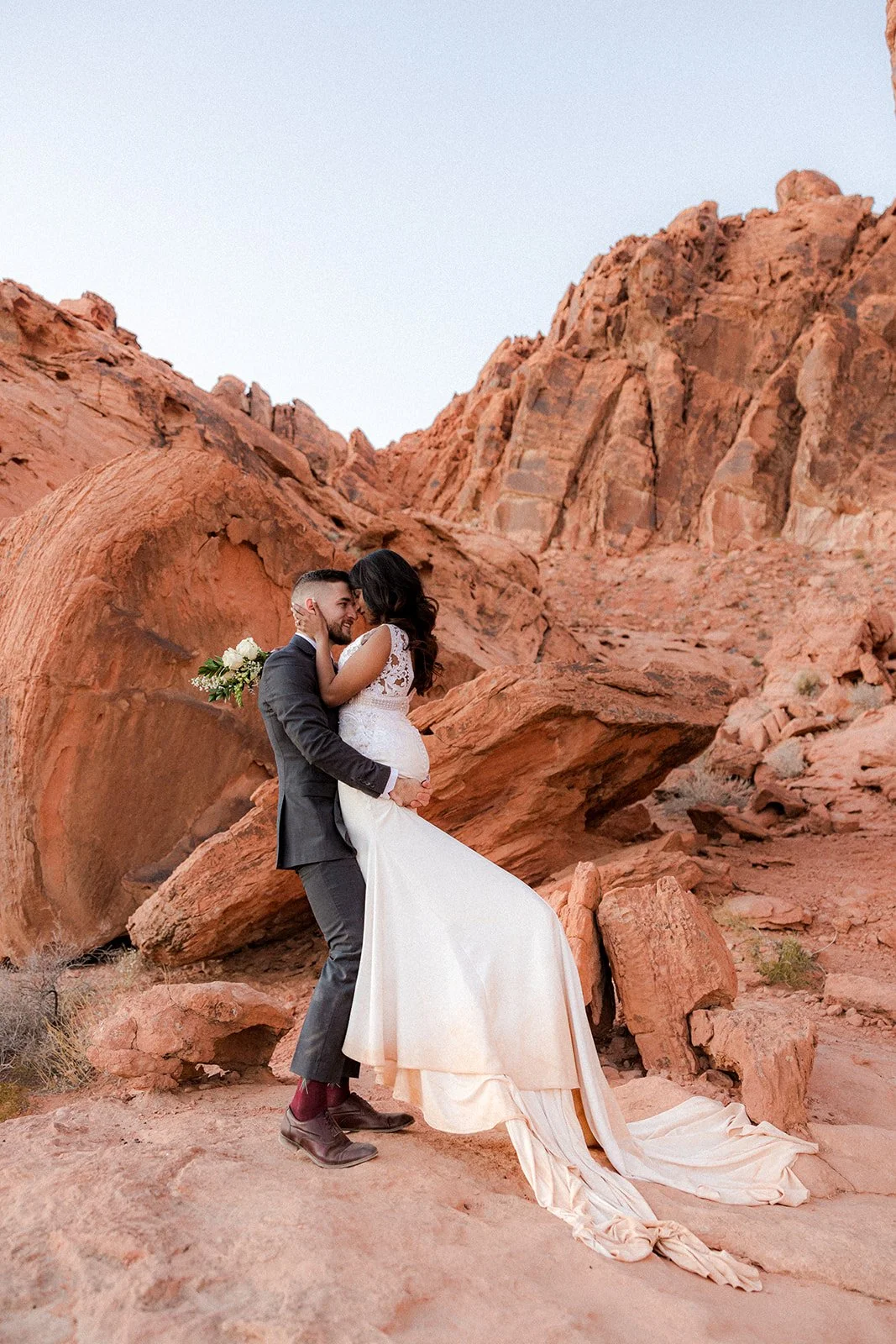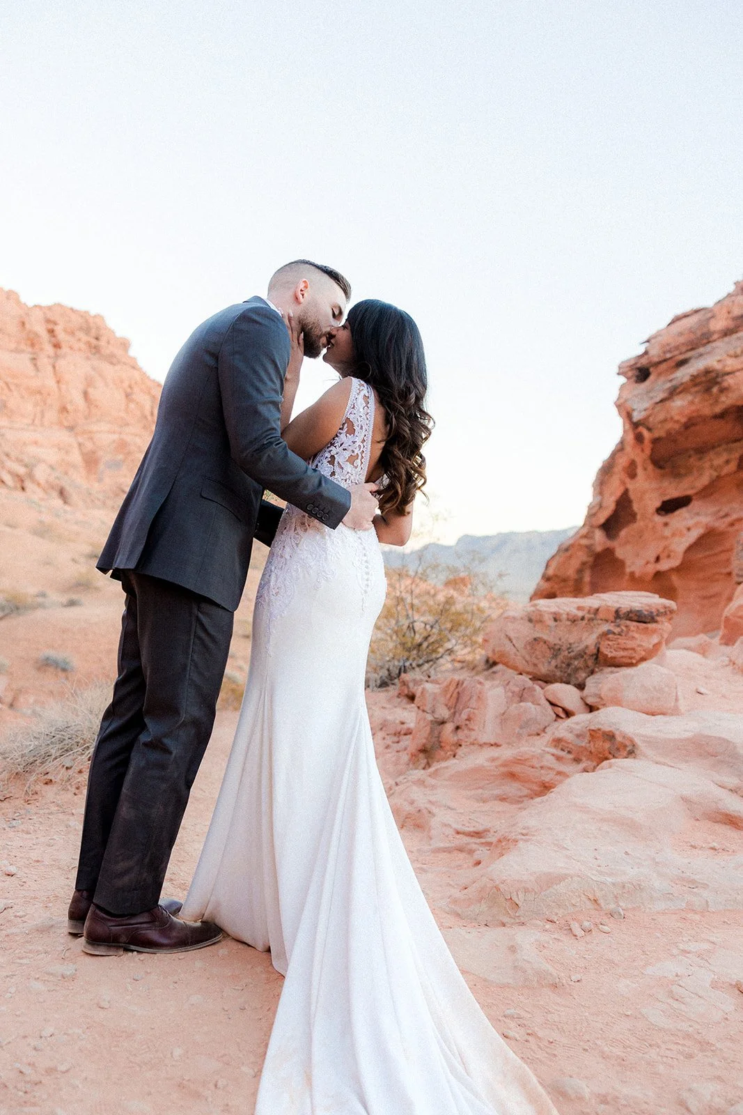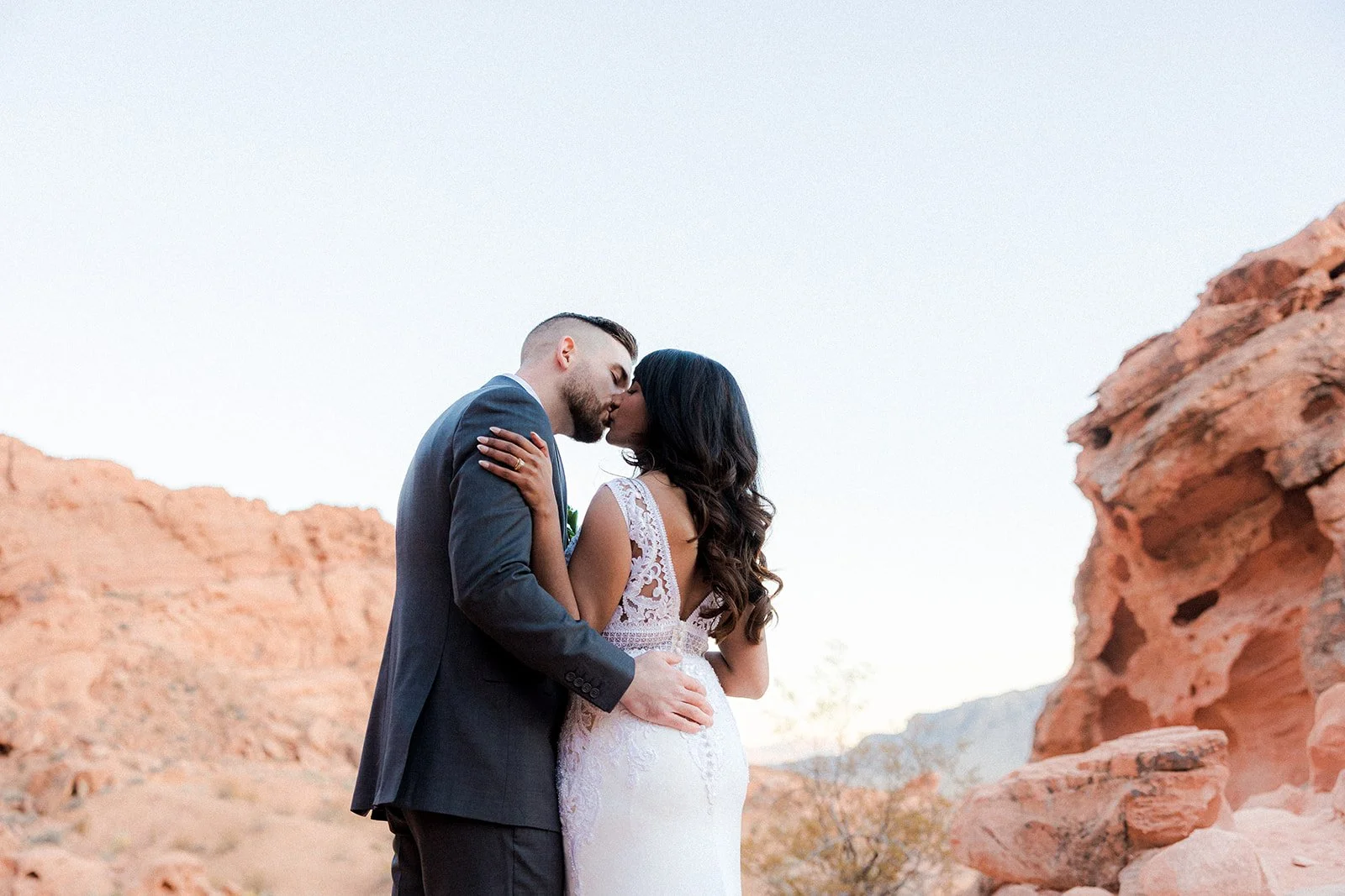 After the ceremony, we took some breathtaking sunset portraits of these two, and wow, the romance was next level. They were laughing, cuddling, and just soaking in every second of their first moments as a married couple. Liya and David’s Valley of Fire elopement was laid-back, beautiful, and so full of love. It was proof that you don’t need a massive wedding to have an unforgettable day, you just need your favorite people, a stunning location, and a whole lot of love!