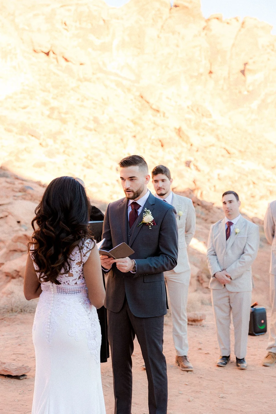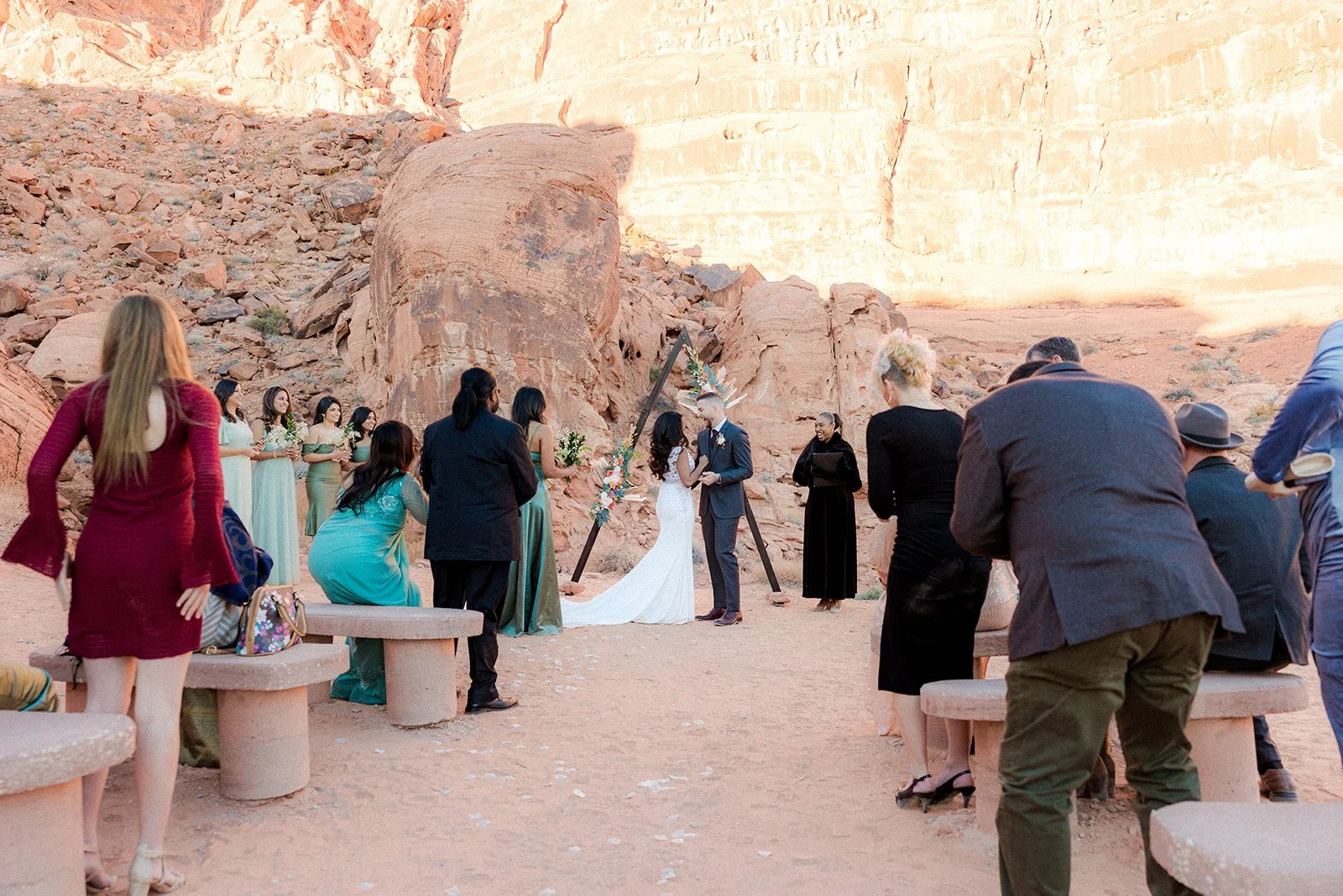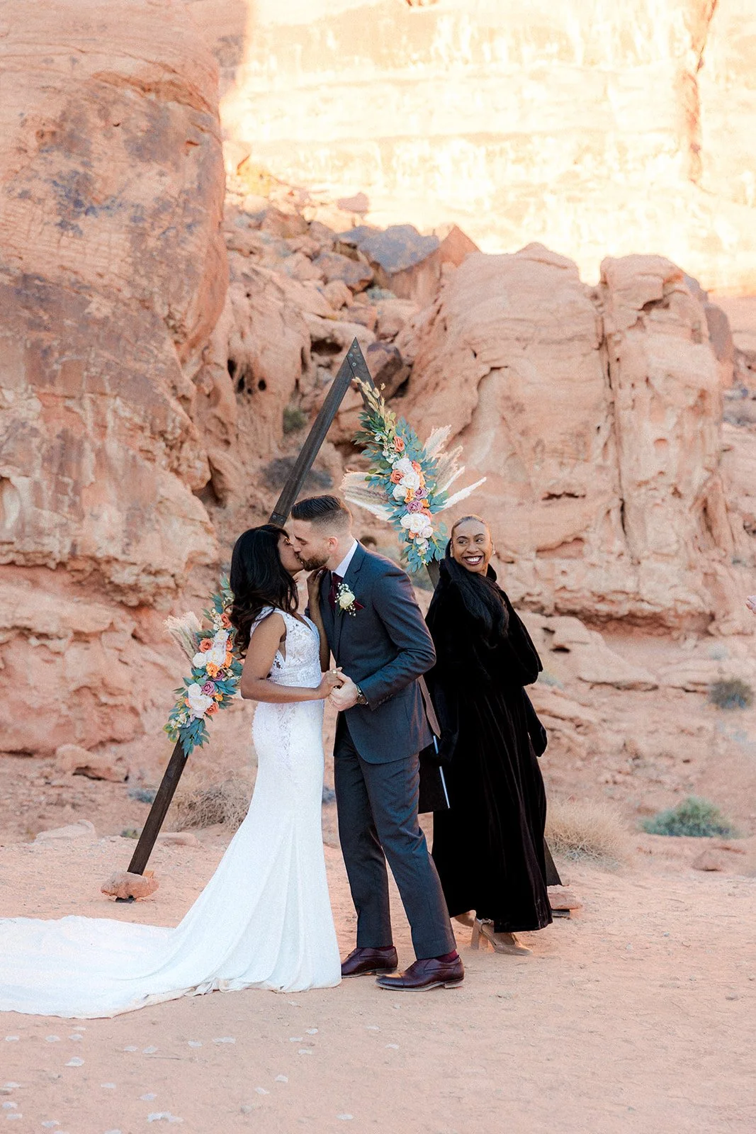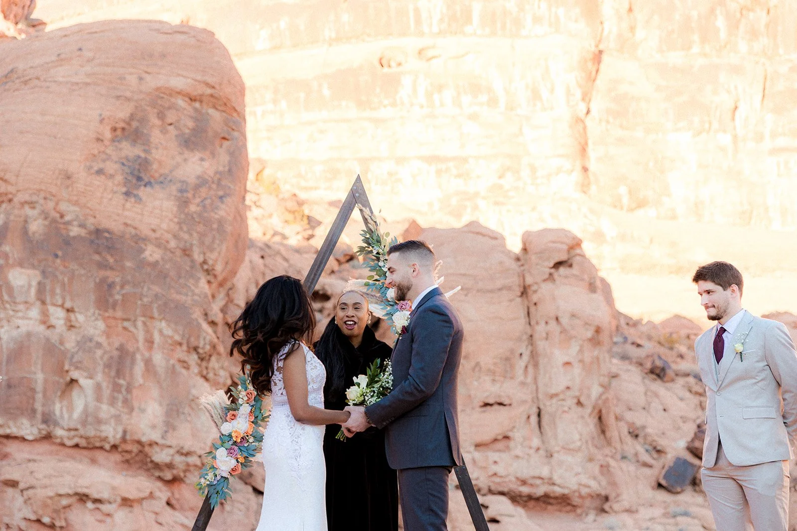 After the ceremony, we took some breathtaking sunset portraits of these two, and wow, the romance was next level. They were laughing, cuddling, and just soaking in every second of their first moments as a married couple. Liya and David’s Valley of Fire elopement was laid-back, beautiful, and so full of love. It was proof that you don’t need a massive wedding to have an unforgettable day, you just need your favorite people, a stunning location, and a whole lot of love!