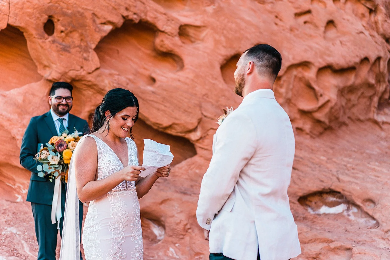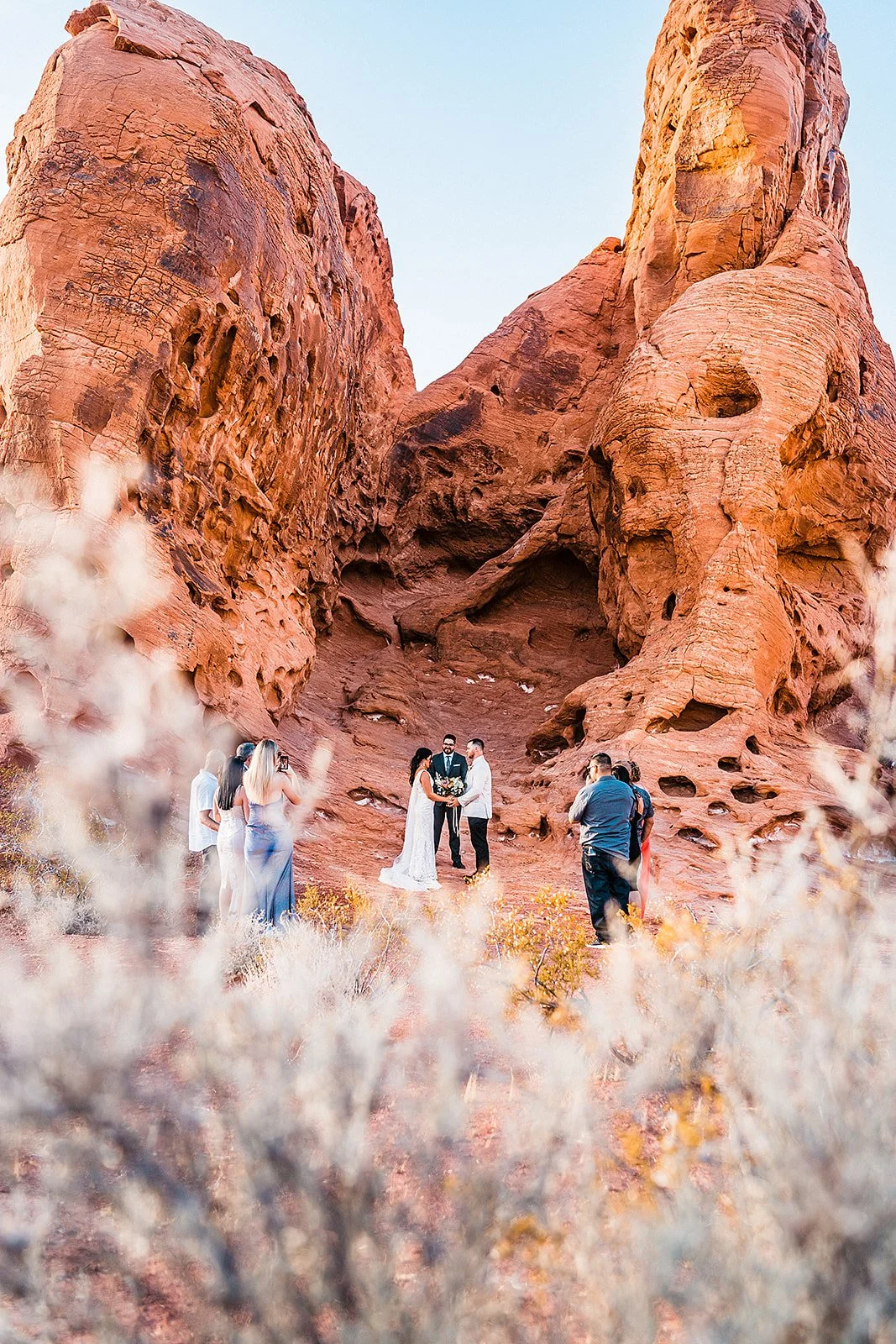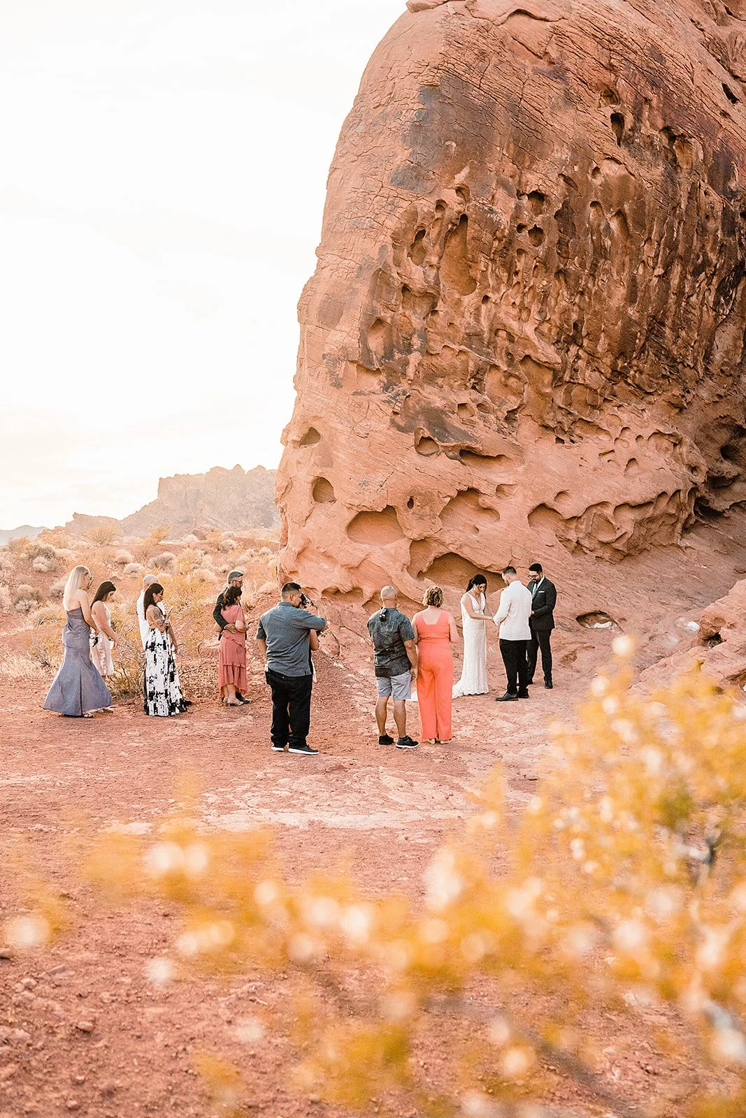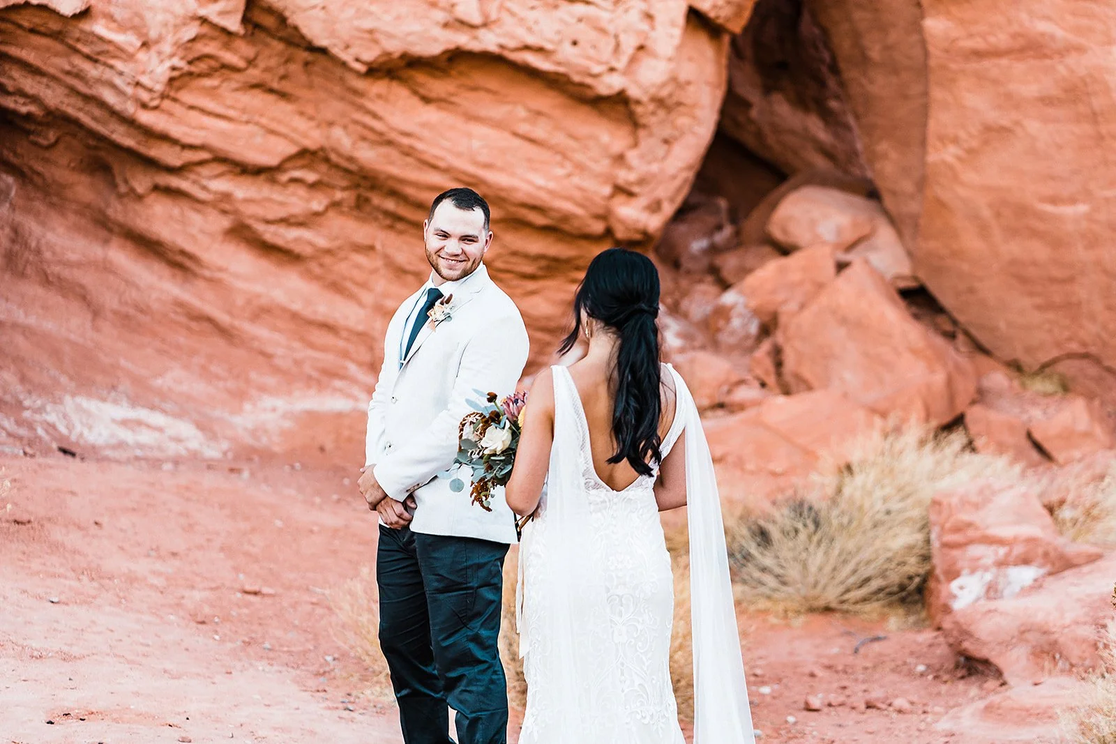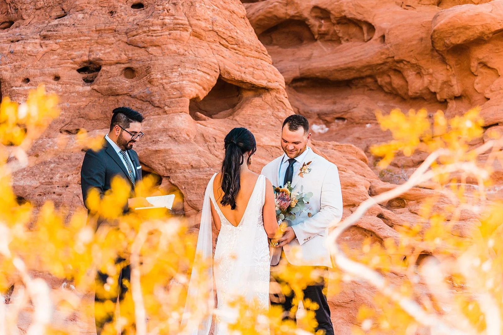 Their chosen venue? The breathtaking Seven Sisters at Valley of Fire, a stunning backdrop that perfectly complemented their vibrant love story. But pulling off an off-the-grid elopement in the blazing Nevada heat wasn’t easy – that’s where Elopement Las Vegas came in, swooping in to coordinate every detail, from securing permits to arranging transportation and vendors, ensuring an all-inclusive elopement experience that was nothing short of magical.