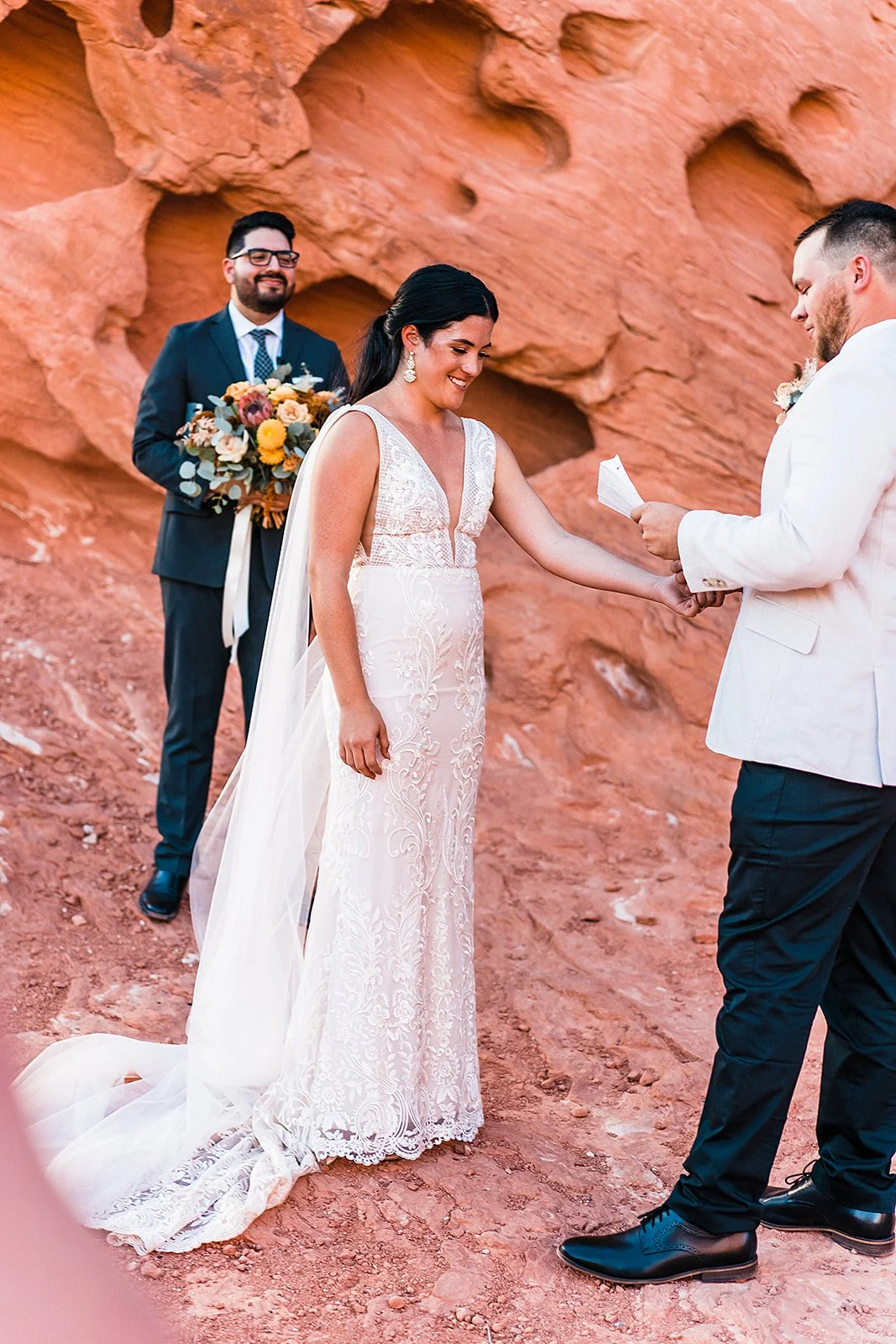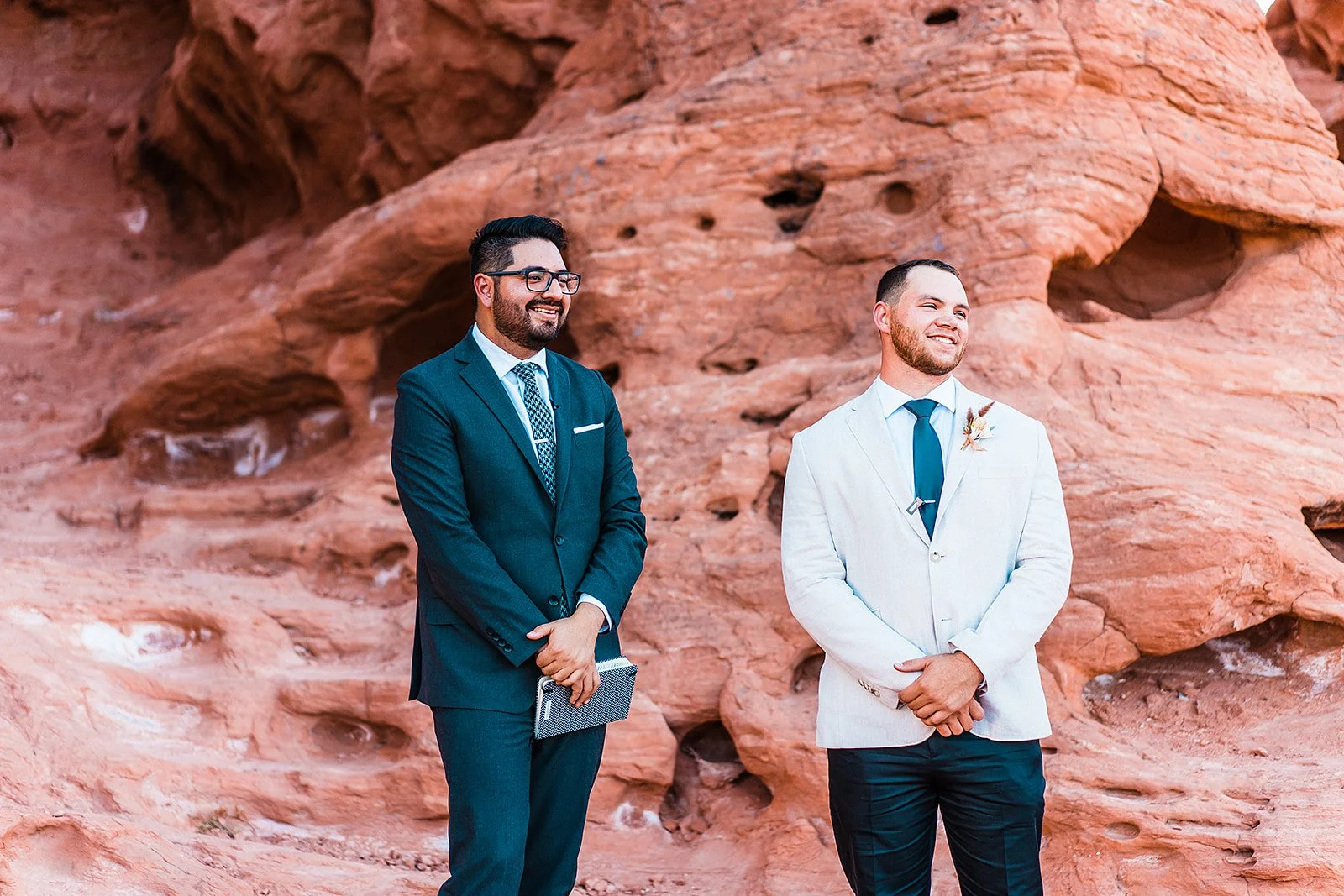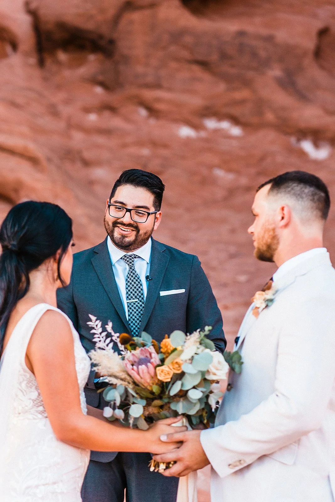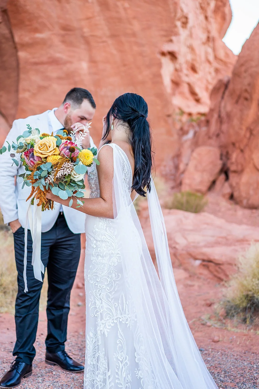 Their chosen venue? The breathtaking Seven Sisters at Valley of Fire, a stunning backdrop that perfectly complemented their vibrant love story. But pulling off an off-the-grid elopement in the blazing Nevada heat wasn’t easy – that’s where Elopement Las Vegas came in, swooping in to coordinate every detail, from securing permits to arranging transportation and vendors, ensuring an all-inclusive elopement experience that was nothing short of magical.