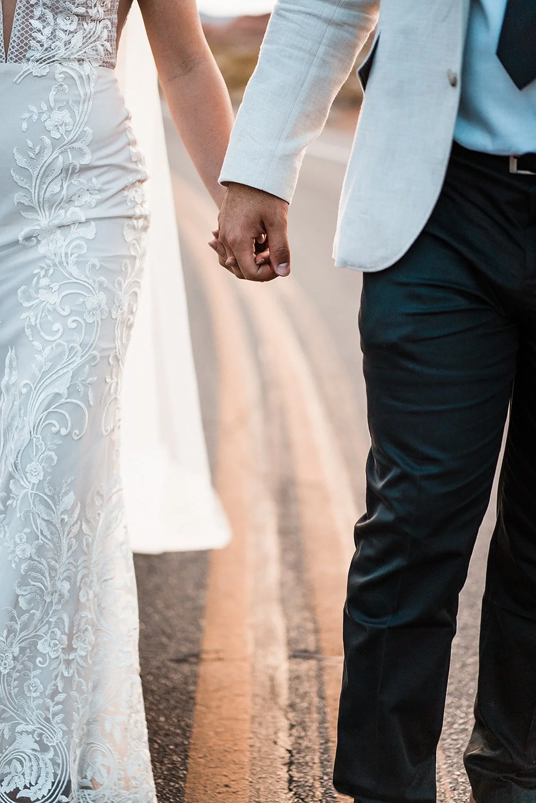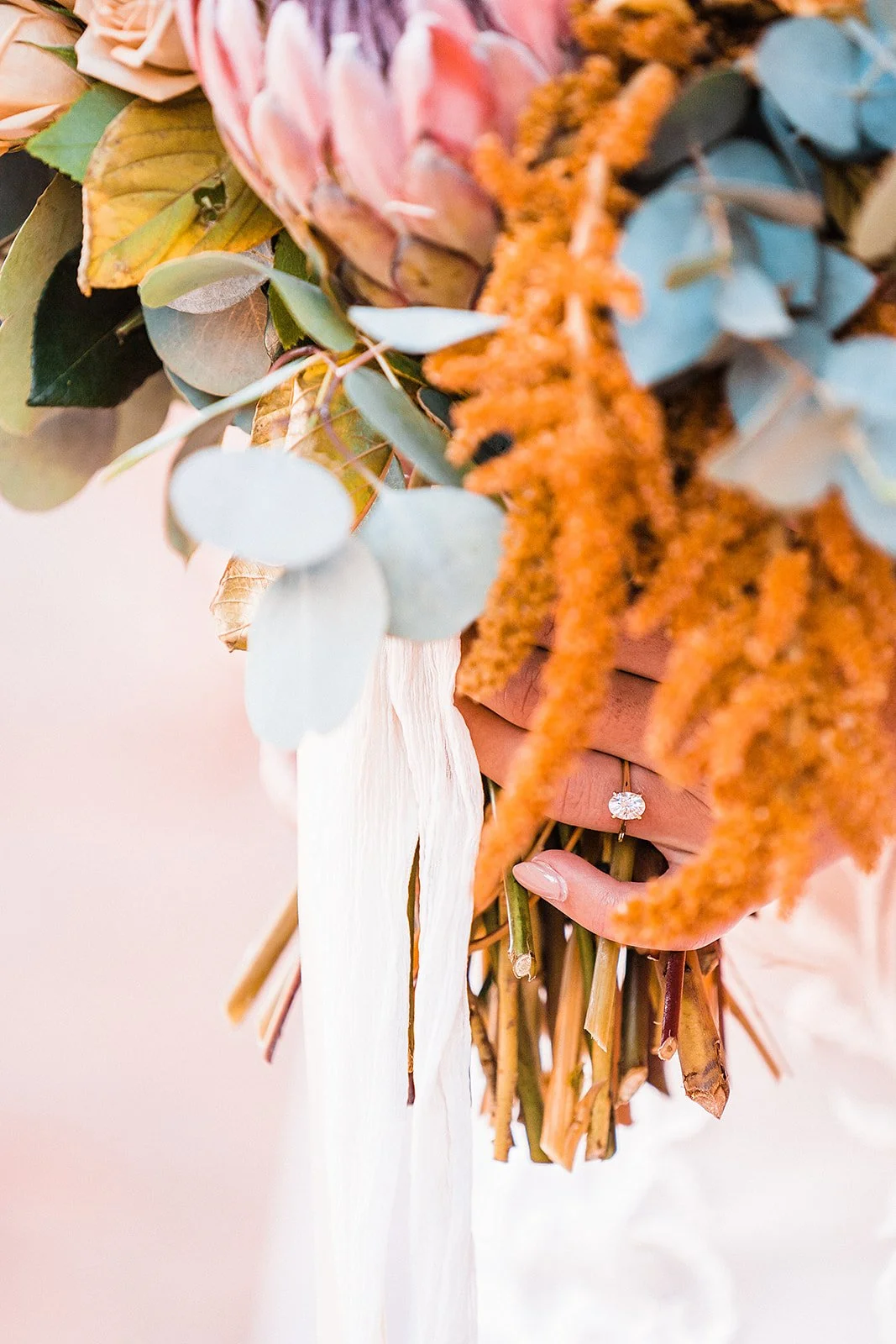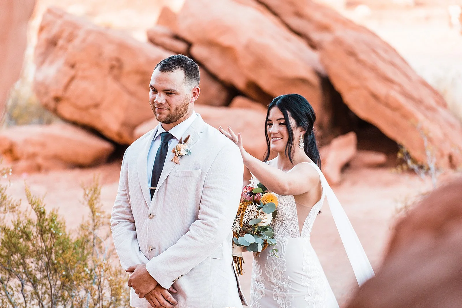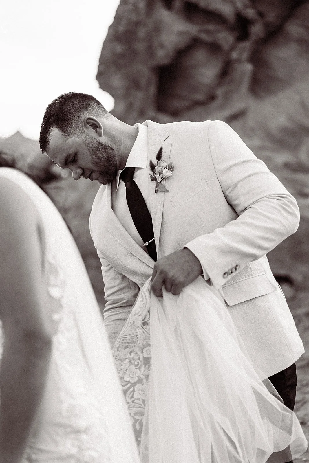 With the desert sun beating down, Alli and Che kicked off their day with a heart-melting first look, followed by a quick and intimate ceremony that brought tears to everyone’s eyes. After exchanging vows, they stole away for a few precious moments alone, savoring the quiet beauty of the desert landscape before joining us for their romantic portraits.