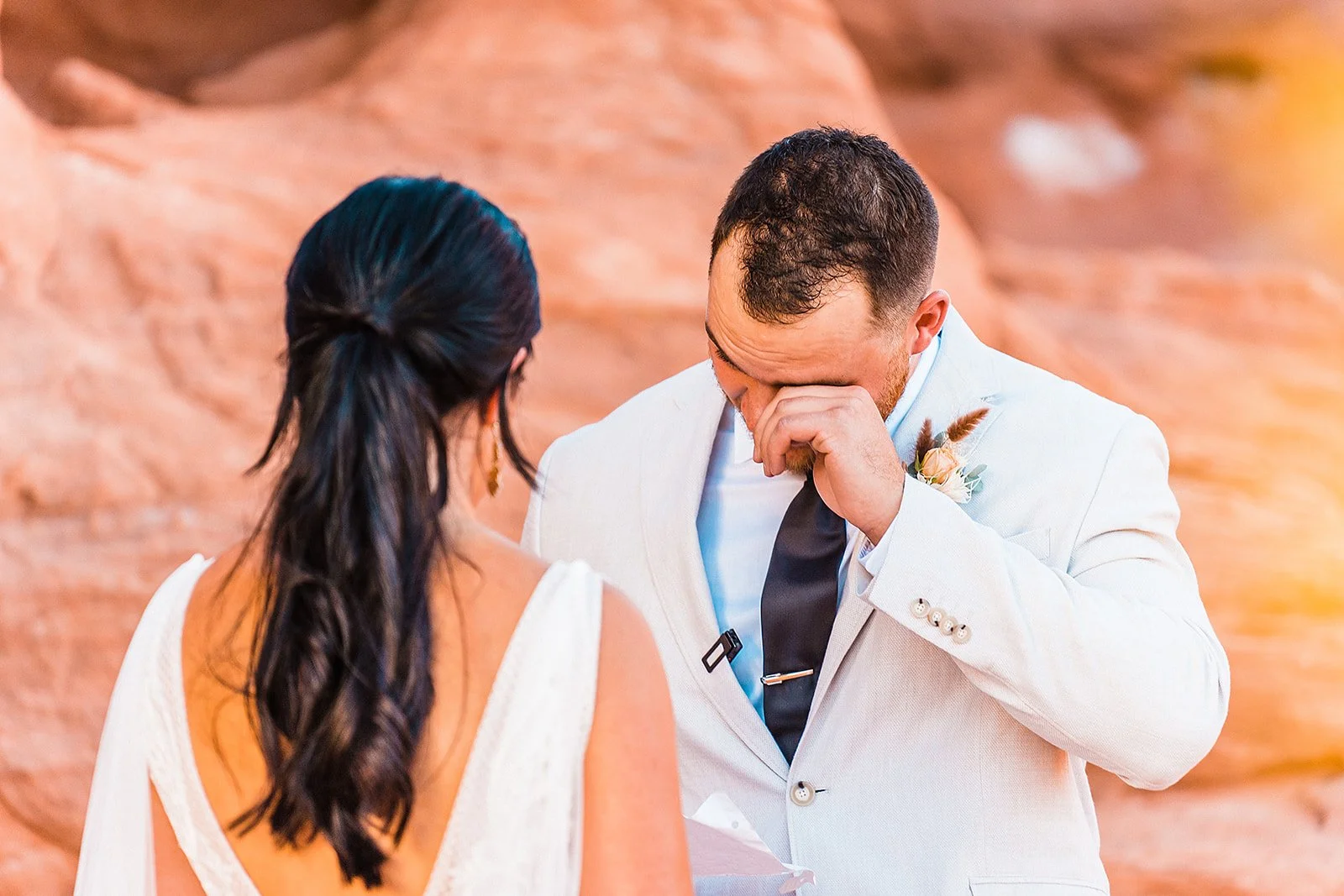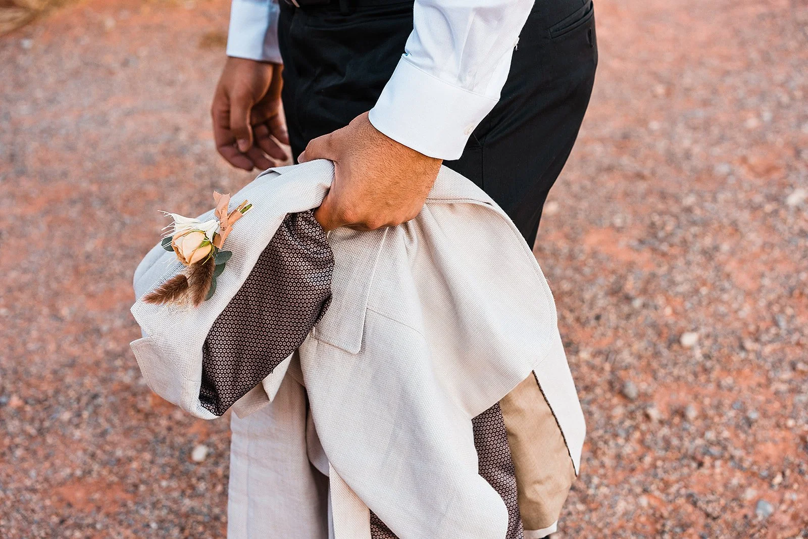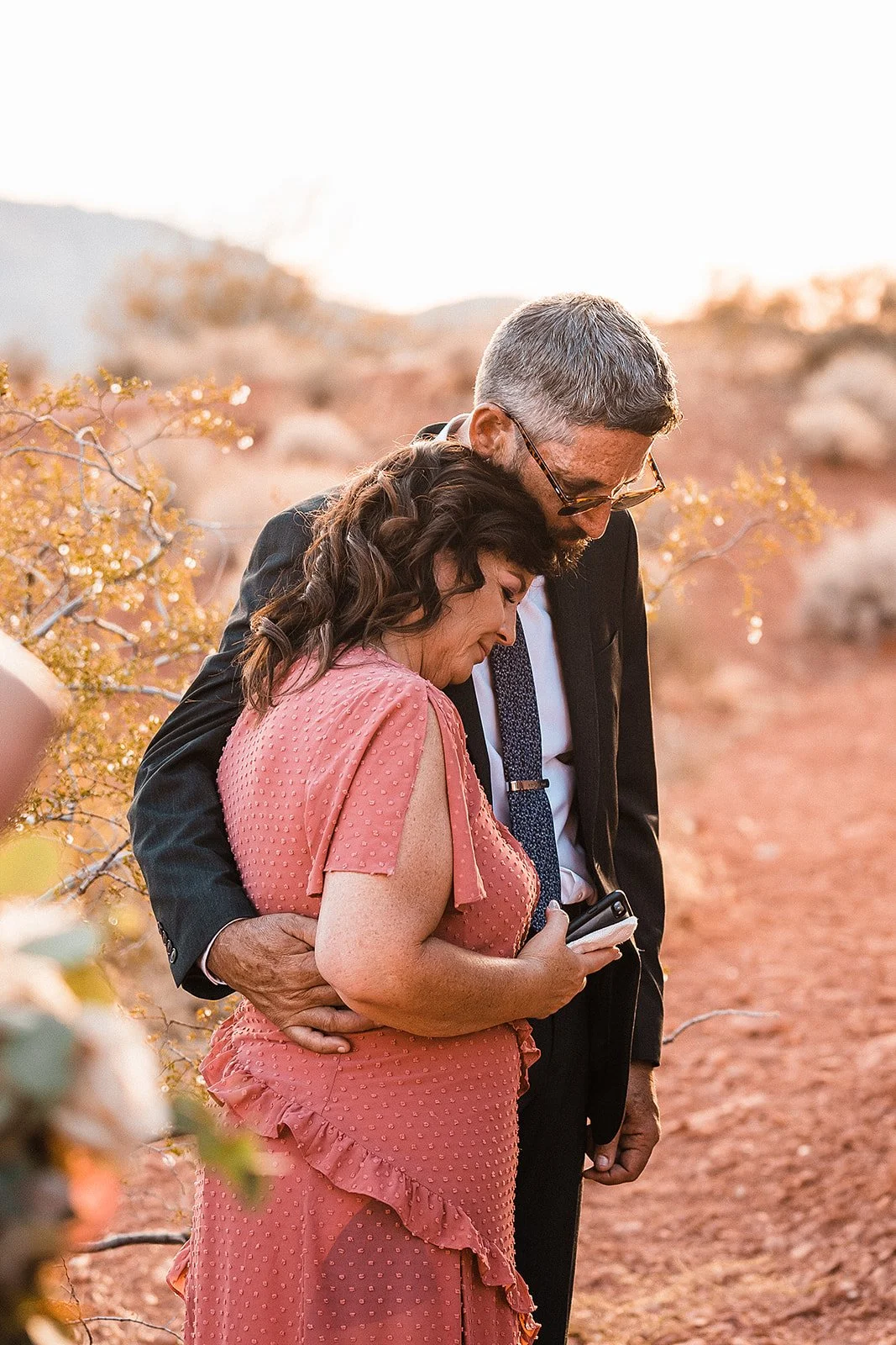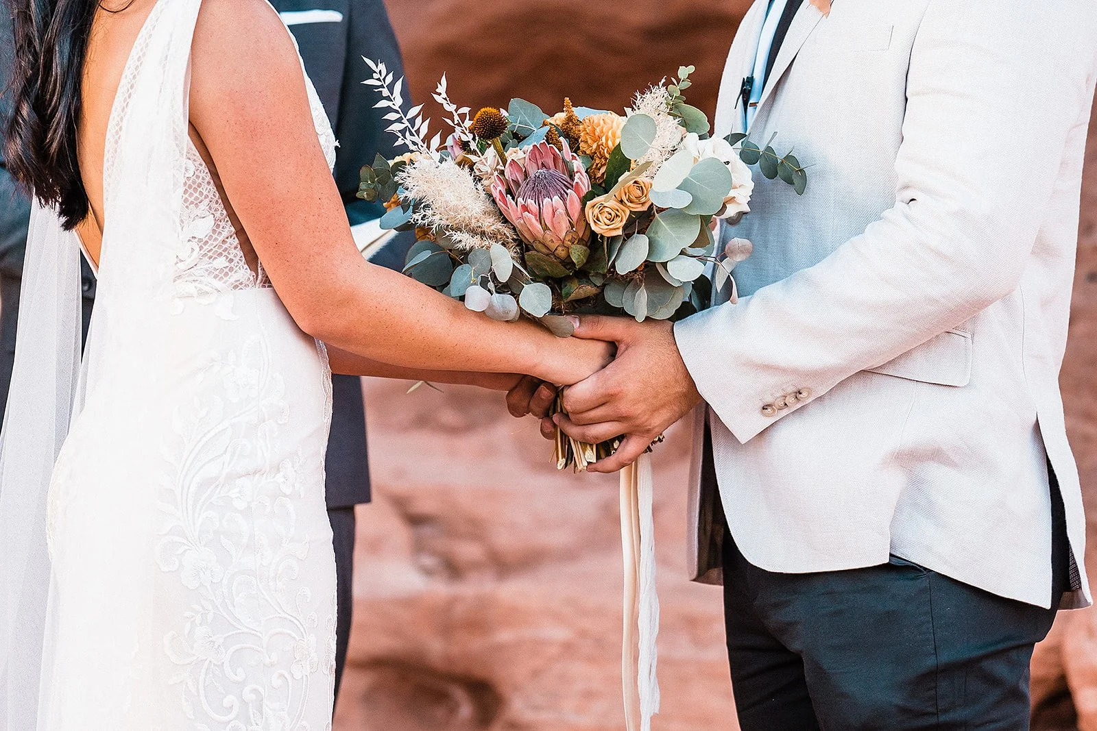 With the desert sun beating down, Alli and Che kicked off their day with a heart-melting first look, followed by a quick and intimate ceremony that brought tears to everyone’s eyes. After exchanging vows, they stole away for a few precious moments alone, savoring the quiet beauty of the desert landscape before joining us for their romantic portraits.