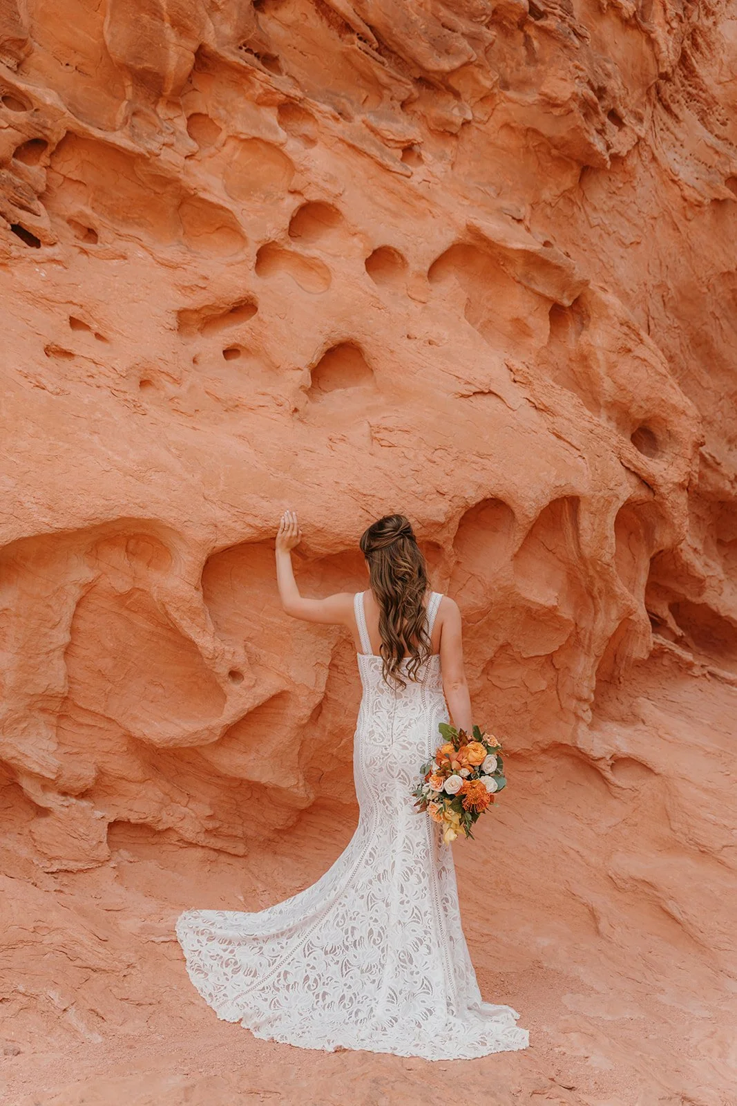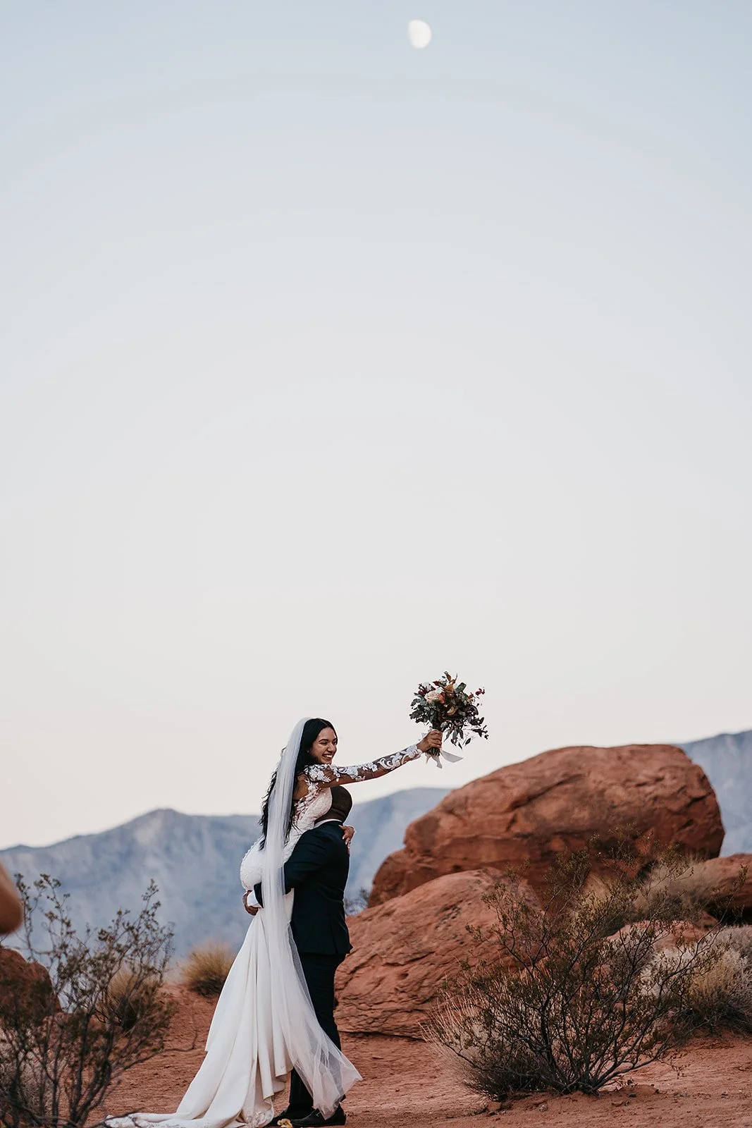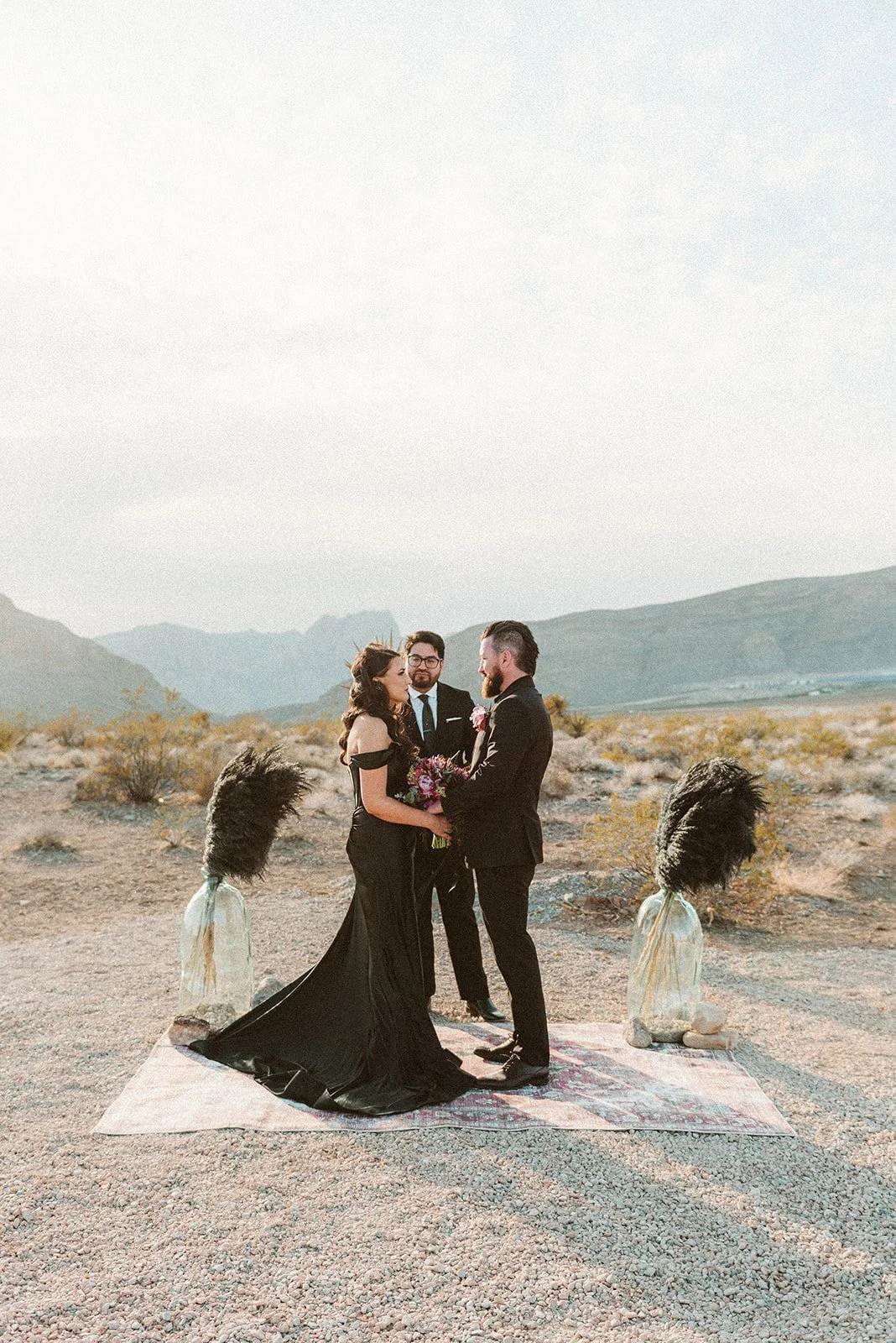 Want to browse a full elopement? Check out Mandy and Joe’s Moody Boho Chic Elopement at Cactus Joes in Blue Diamond!