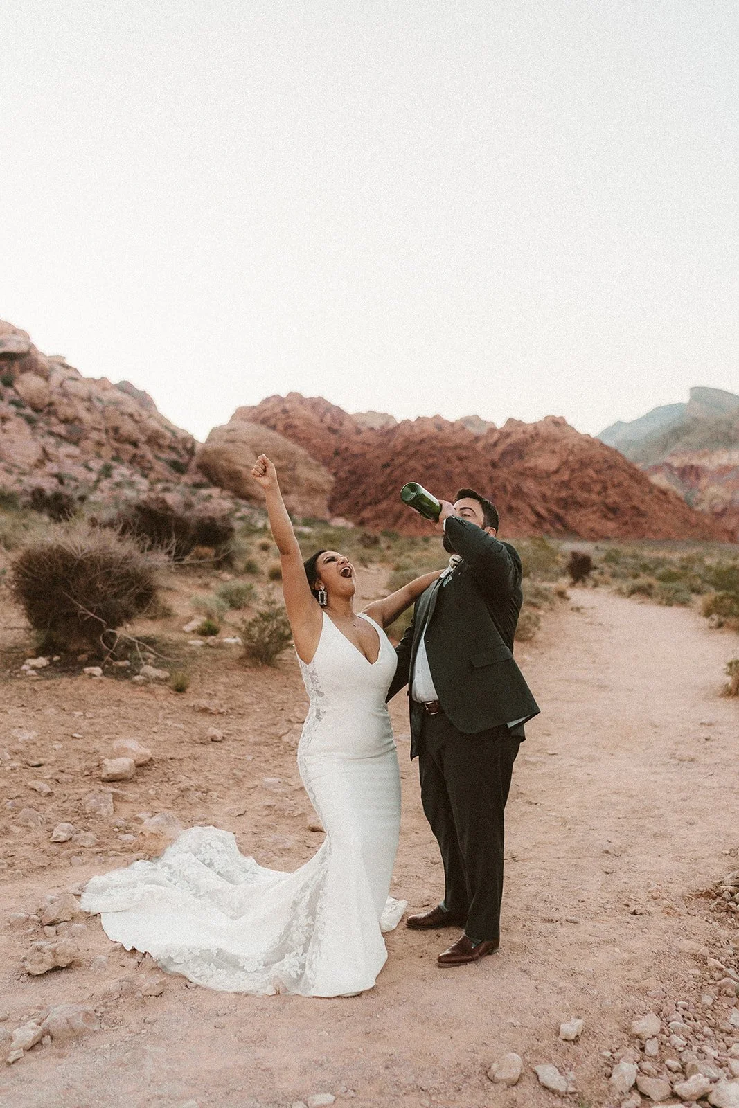 Seven Magic Mountains Sunrise Elopement with Trixies Mobile Bars and Pomp and Pearl for Roll with it Retreats.