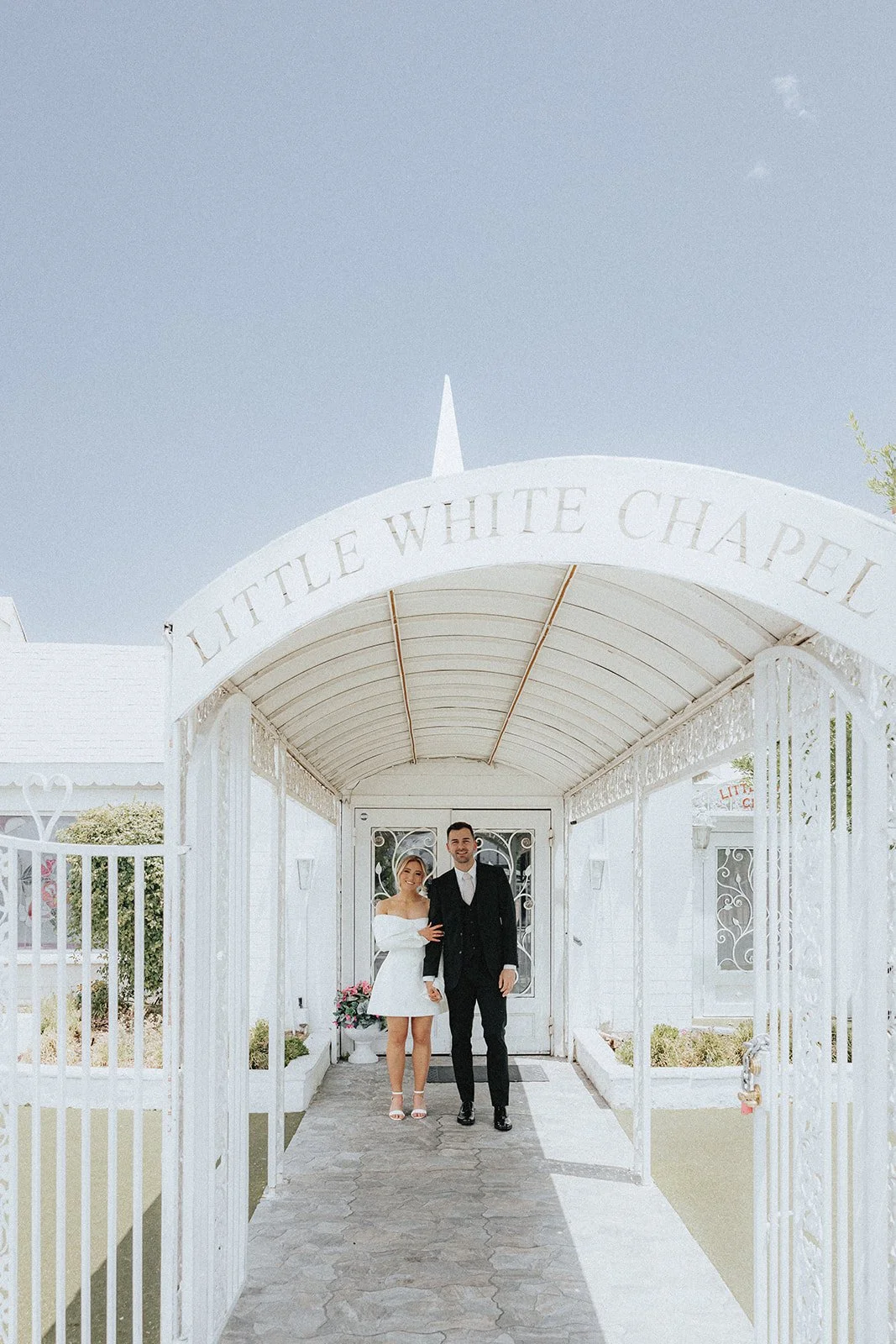 When Claire and Chris hopped on a plane from Scotland to elope in Las Vegas, they didn’t just bring their vows, they brought the vibe. This wasn’t your typical one-and-done kind of wedding day. These two turned their celebration into an effortlessly cool, two-part experience that felt stylish, romantic, and so them. From the retro beauty of A Little White Chapel to the glittering skyline of the Strip at night, every moment was packed with heart and intention. And the best part? They gave themselves the space and time to enjoy every single part of it. Let’s walk through the magic of both days, because this one deserves the full story!