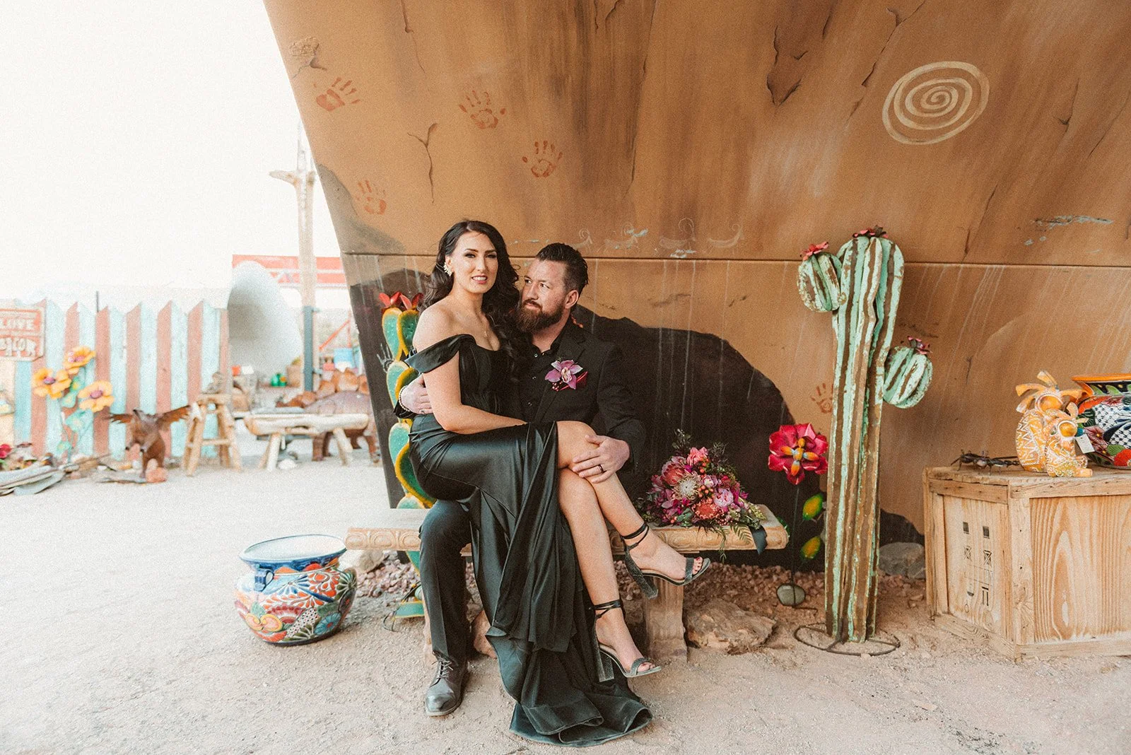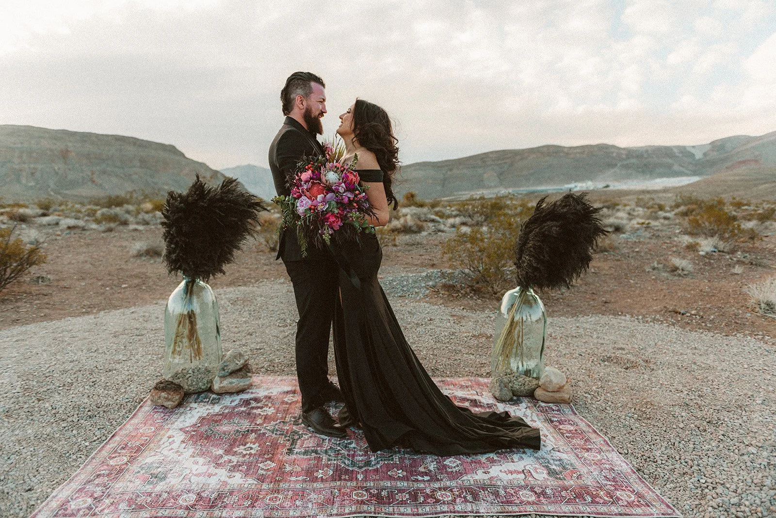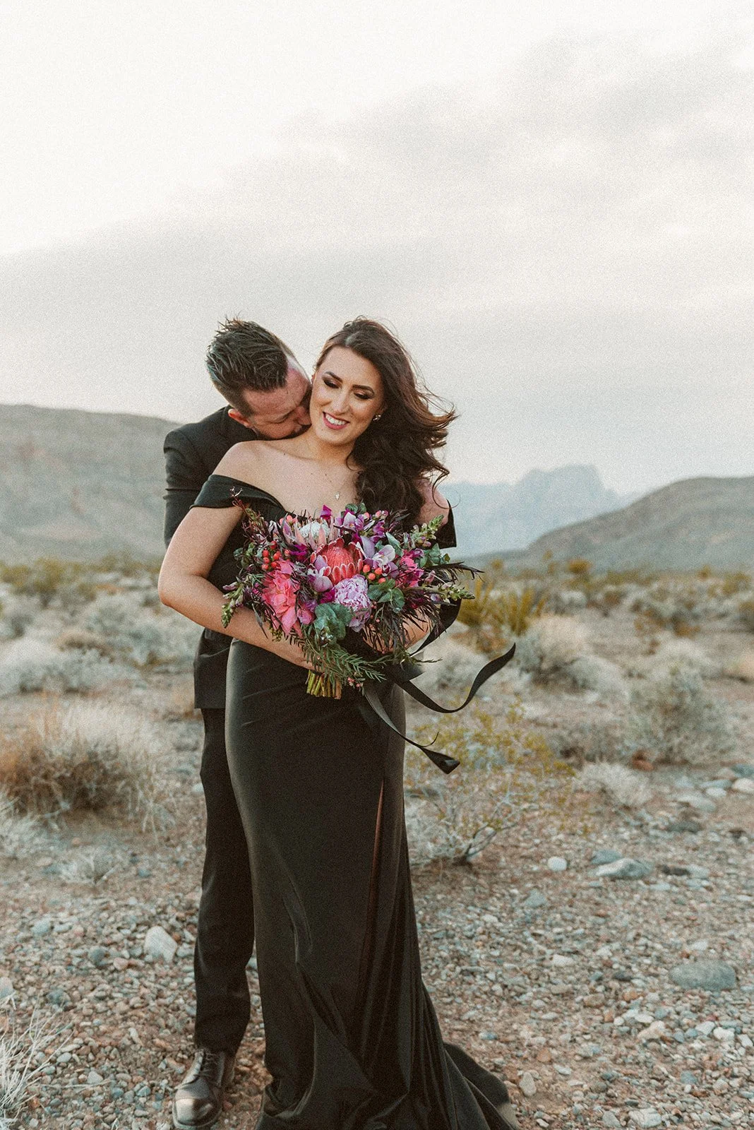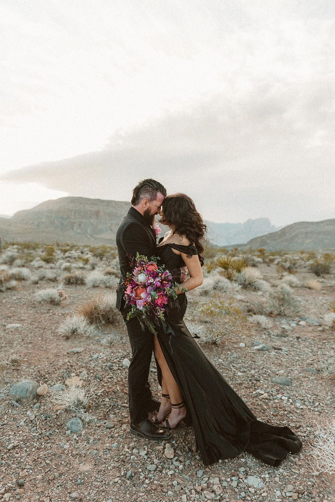 Dark and Moody Desert Elopement at Cactus Joe’s: Boho-Chic Affair in Vegas