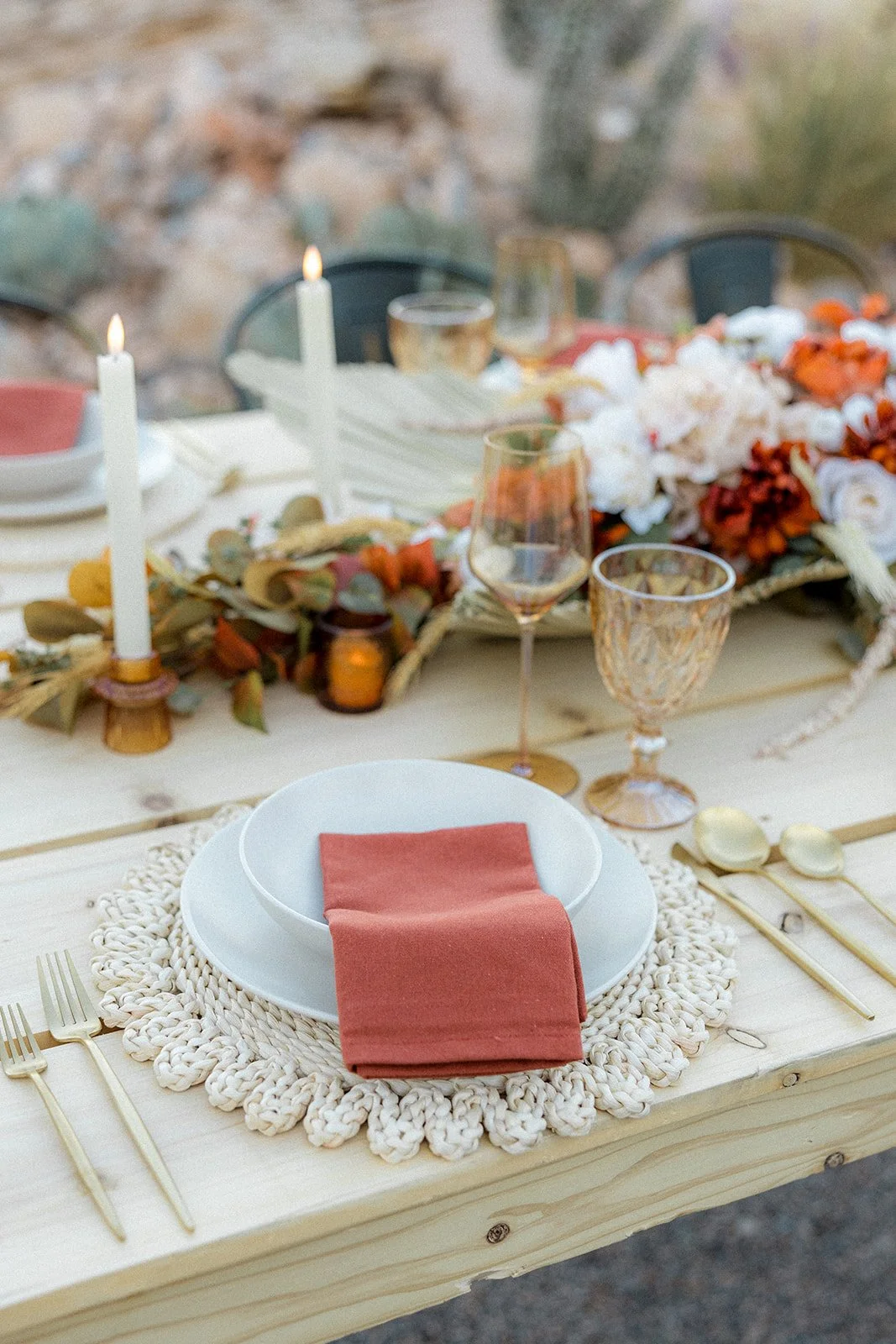 The desert is stunning year-round, but the best times for an outdoor elopement at Cactus Joe’s Events are spring (March to May) and fall (September to November). During these months, the weather is mild and comfortable, making it perfect for celebrating outdoors without worrying about extreme heat or cold. Make sure to check the weather and season for when you are planning your elopement so it’s not too hot or too cold!