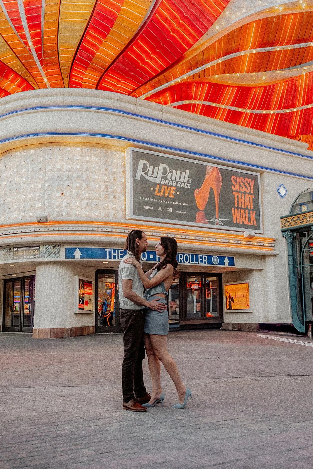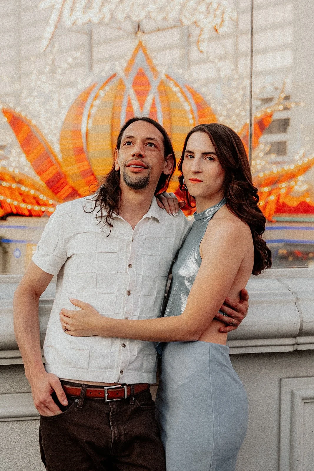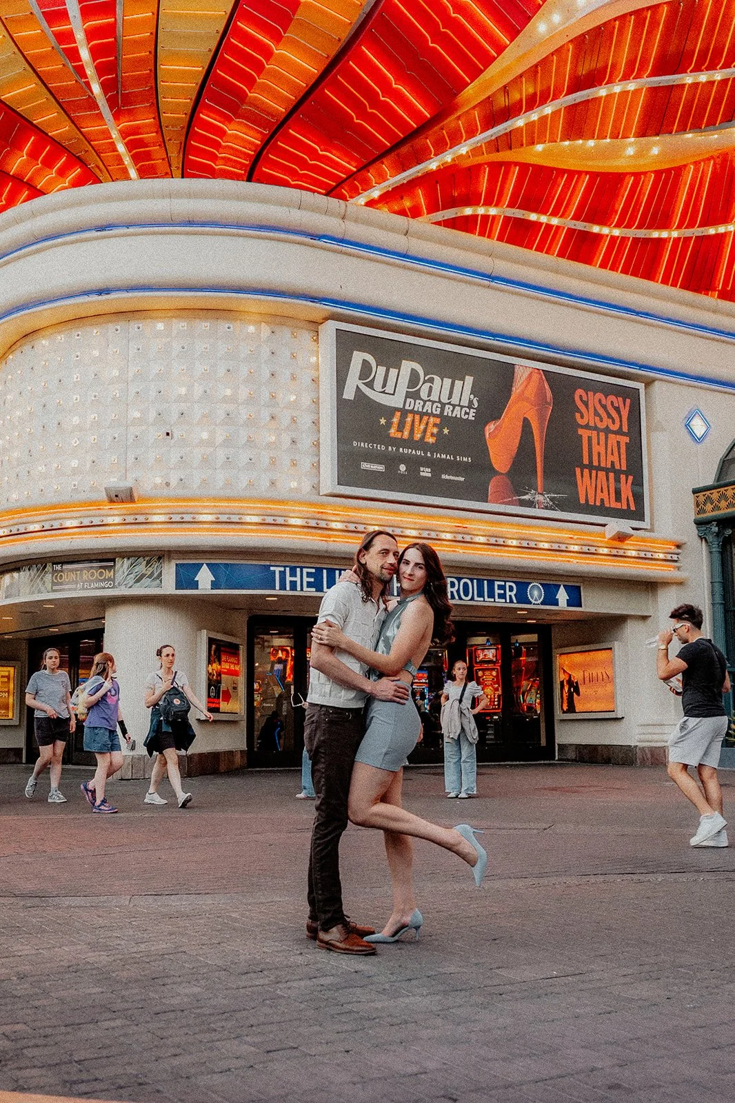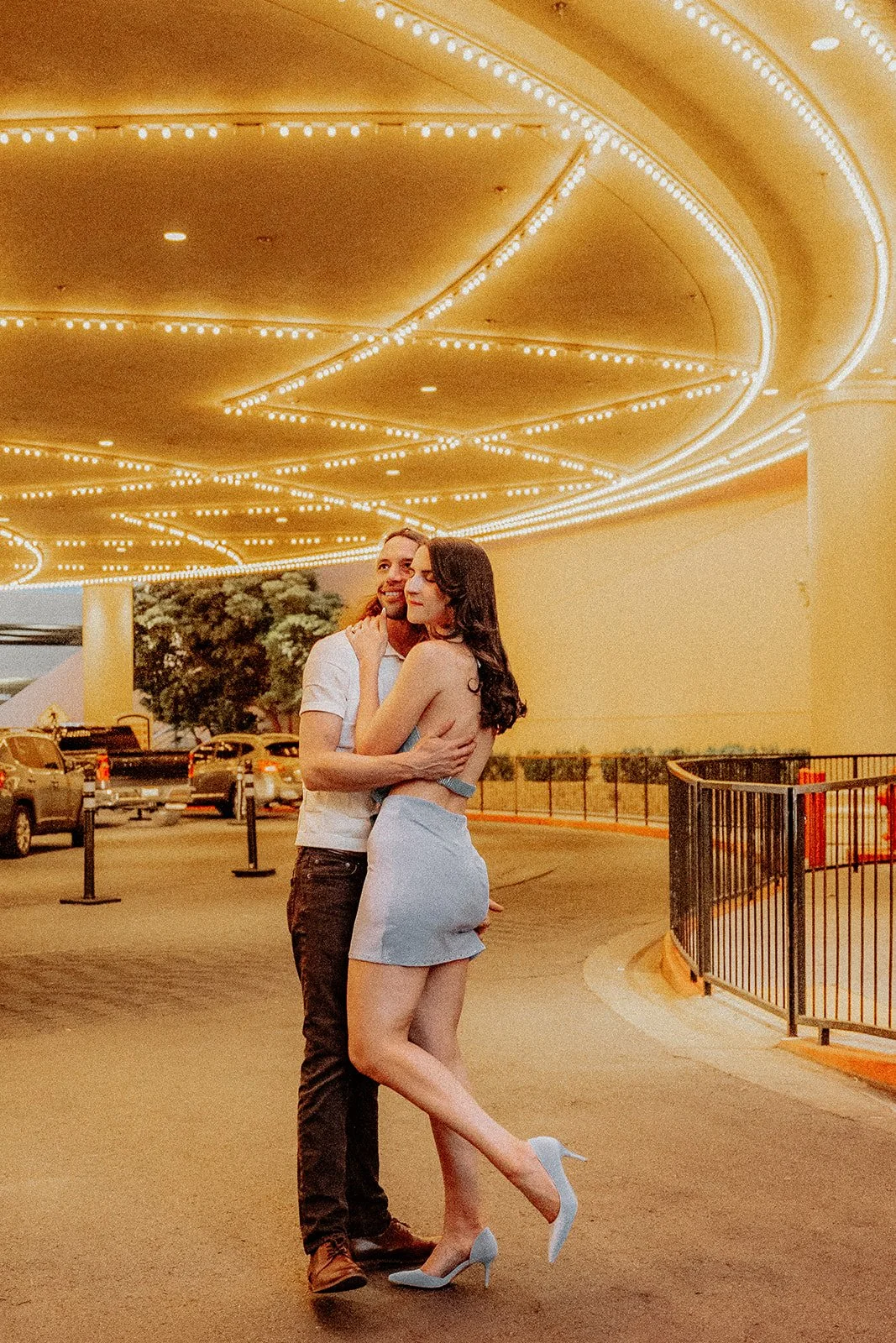 This was a short-and-sweet anniversary shoot on the Las Vegas Strip, but the photos? Major main character energy. The couple met up with Gina for a 30-minute session, and in that time they hit iconic spots like The Flamingo, Caesars Palace, and some dreamy golden-lit corners that felt cinematic and effortlessly cool. No outfit changes. No stress. Just love, connection, and that fluttery feeling of “wow, we’re really here together.”