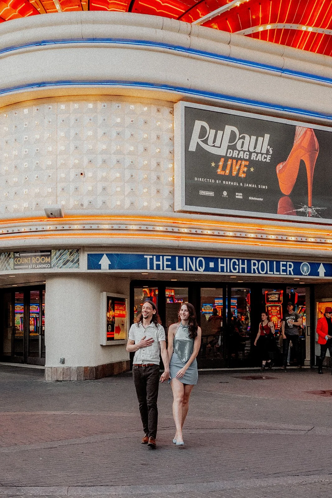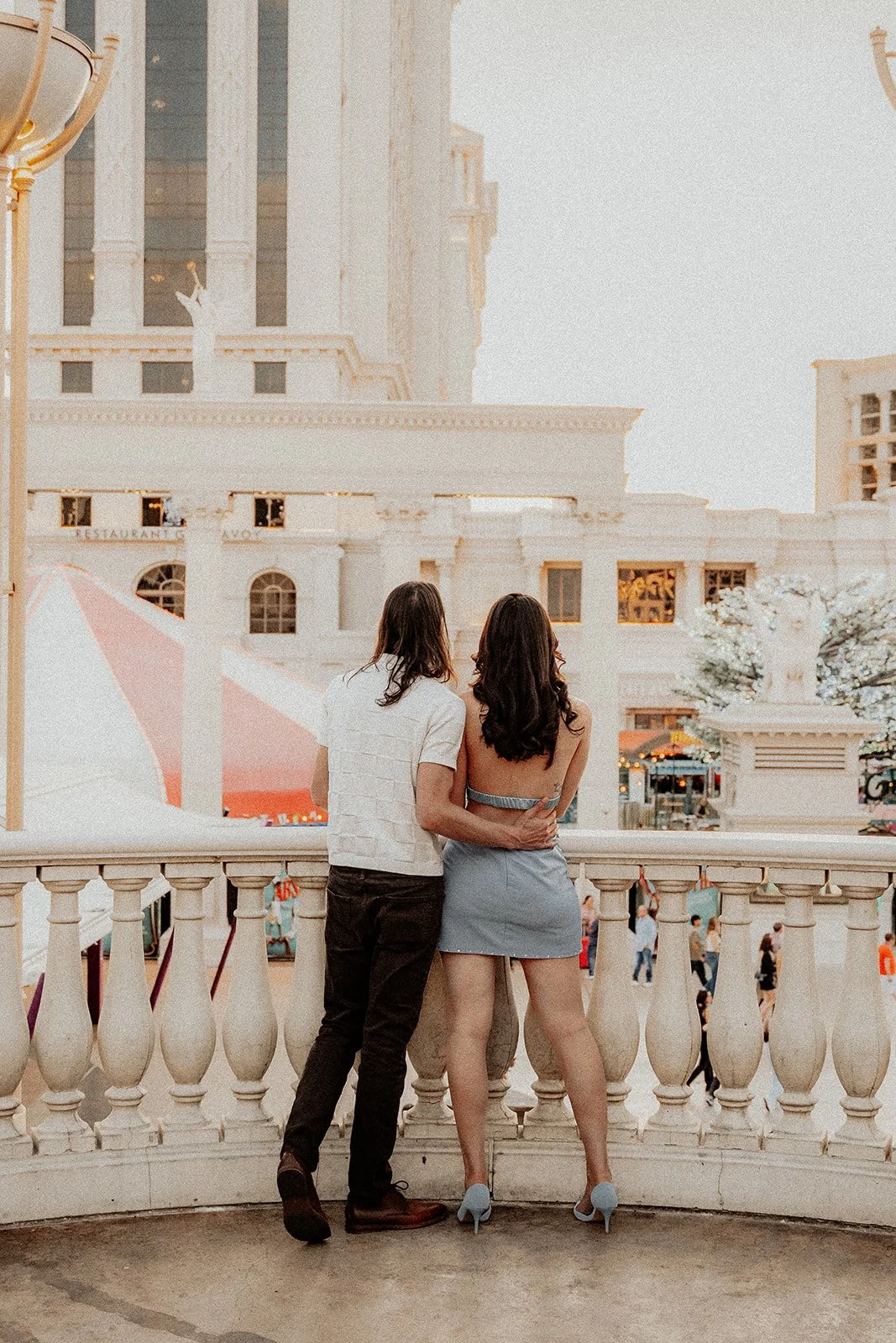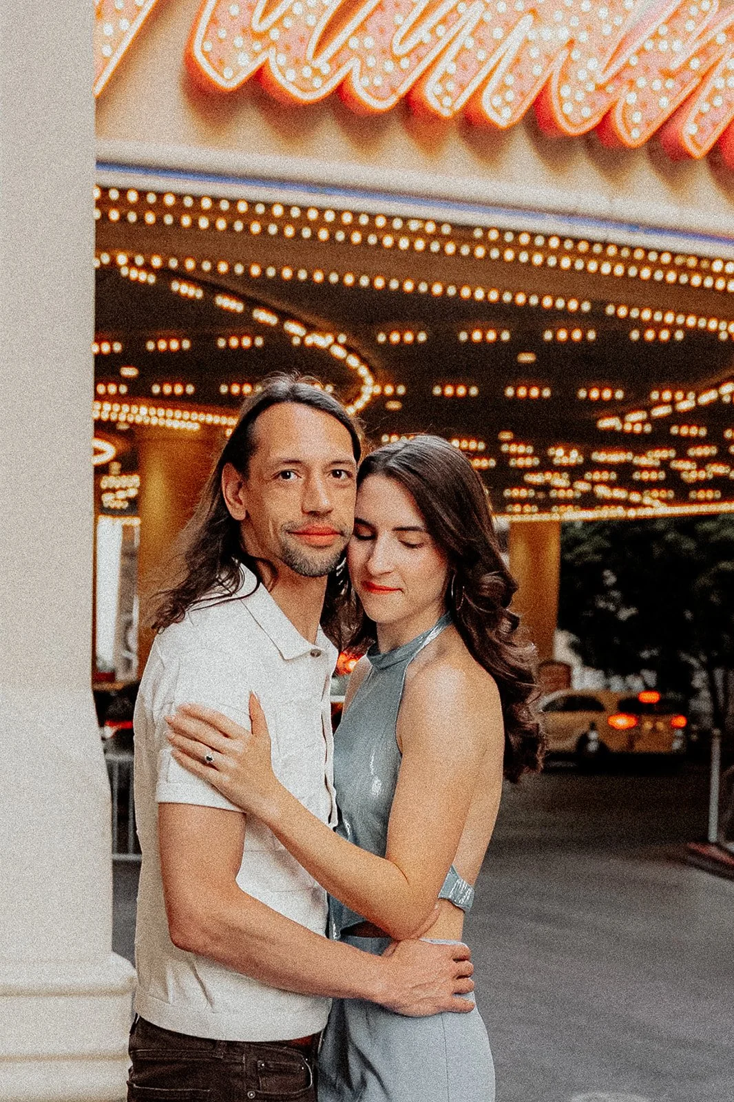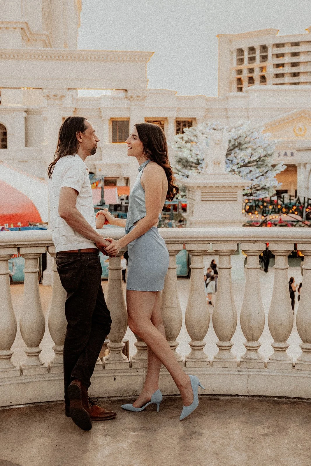 This was a short-and-sweet anniversary shoot on the Las Vegas Strip, but the photos? Major main character energy. The couple met up with Gina for a 30-minute session, and in that time they hit iconic spots like The Flamingo, Caesars Palace, and some dreamy golden-lit corners that felt cinematic and effortlessly cool. No outfit changes. No stress. Just love, connection, and that fluttery feeling of “wow, we’re really here together.”