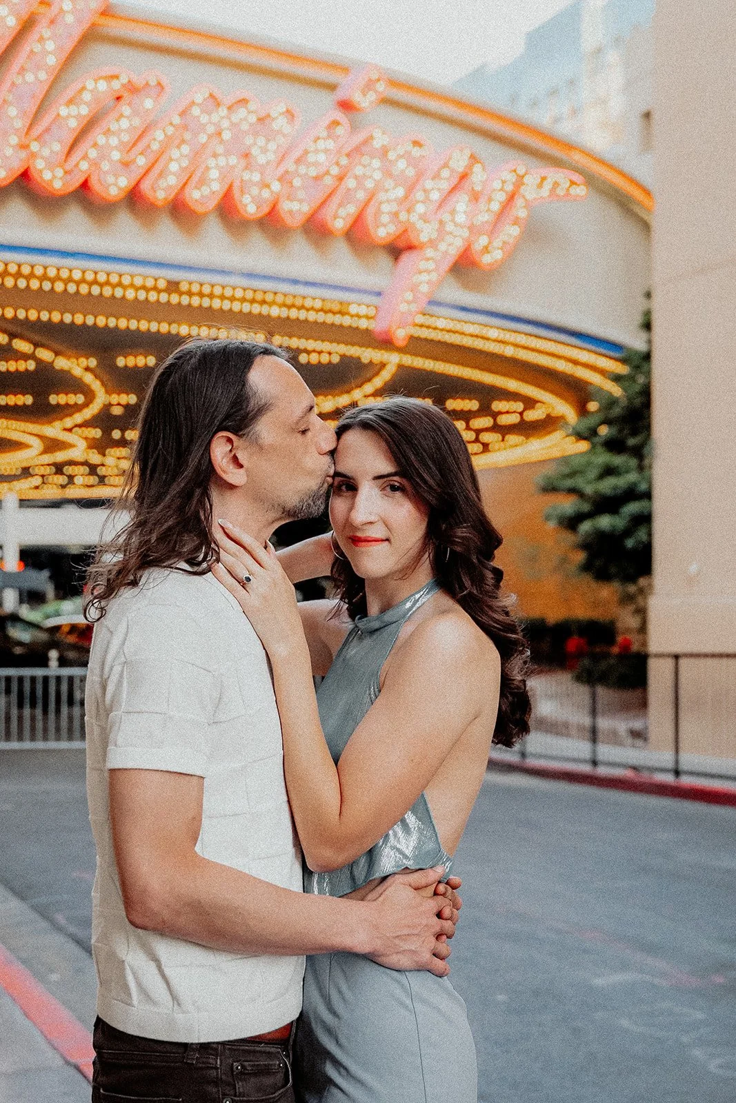 If you’re planning a trip to Vegas with your person, do yourself a favor and add “book a couple session” to the itinerary, right next to “order fries at 2am” and “say yes to the sequins.” Whether it’s your anniversary, a spontaneous baecation, or just an excuse to get dressed up and kiss under neon lights, a Las Vegas couple session is one of the most fun, easy, and actually meaningful ways to celebrate your relationship while you’re in the city. This session was captured by Gina from our associate team and it’s the perfect example of how just 30 minutes can turn into a gallery full of pure magic!